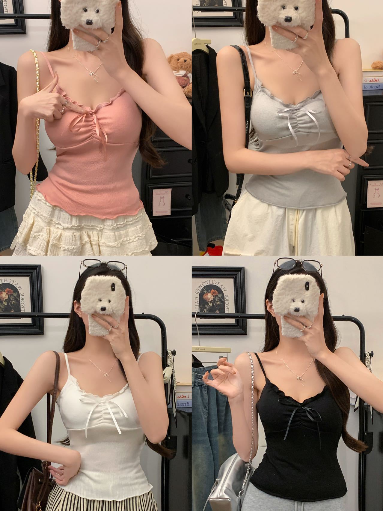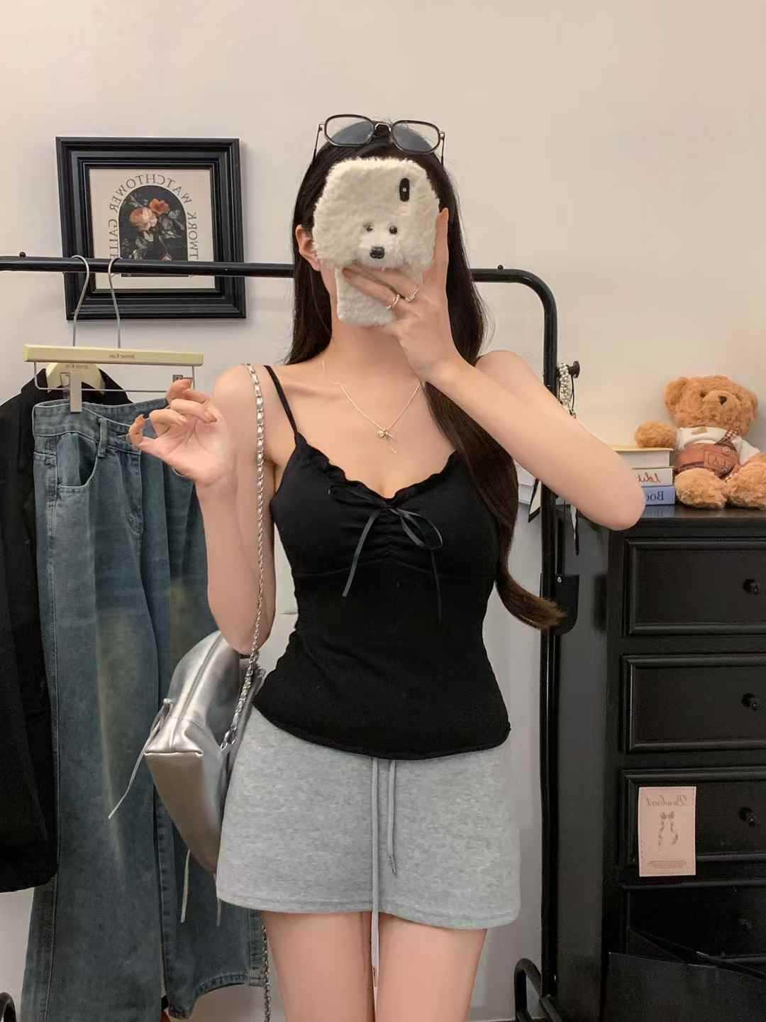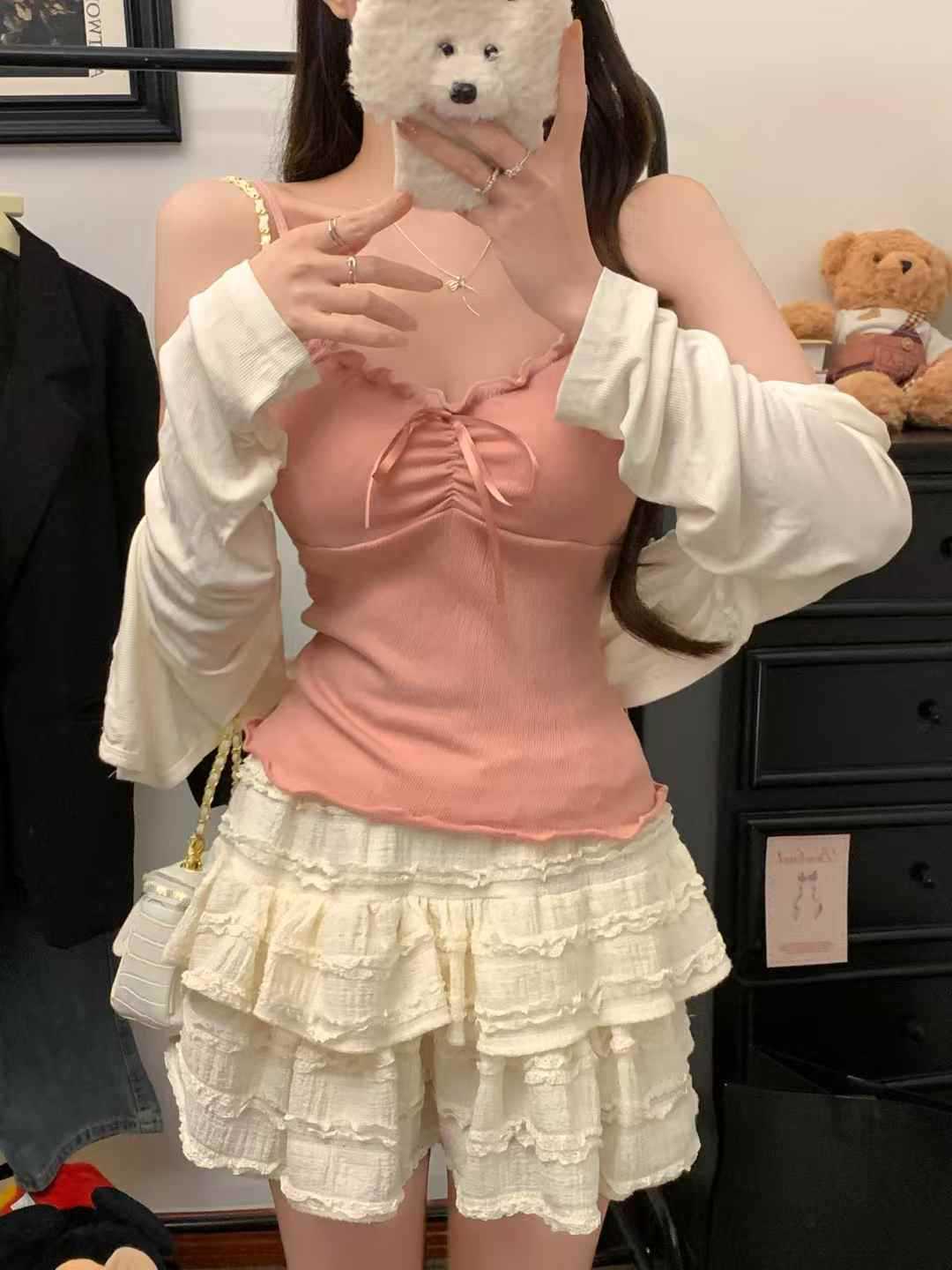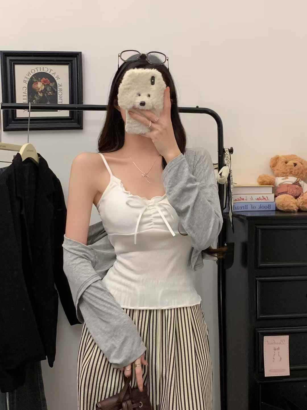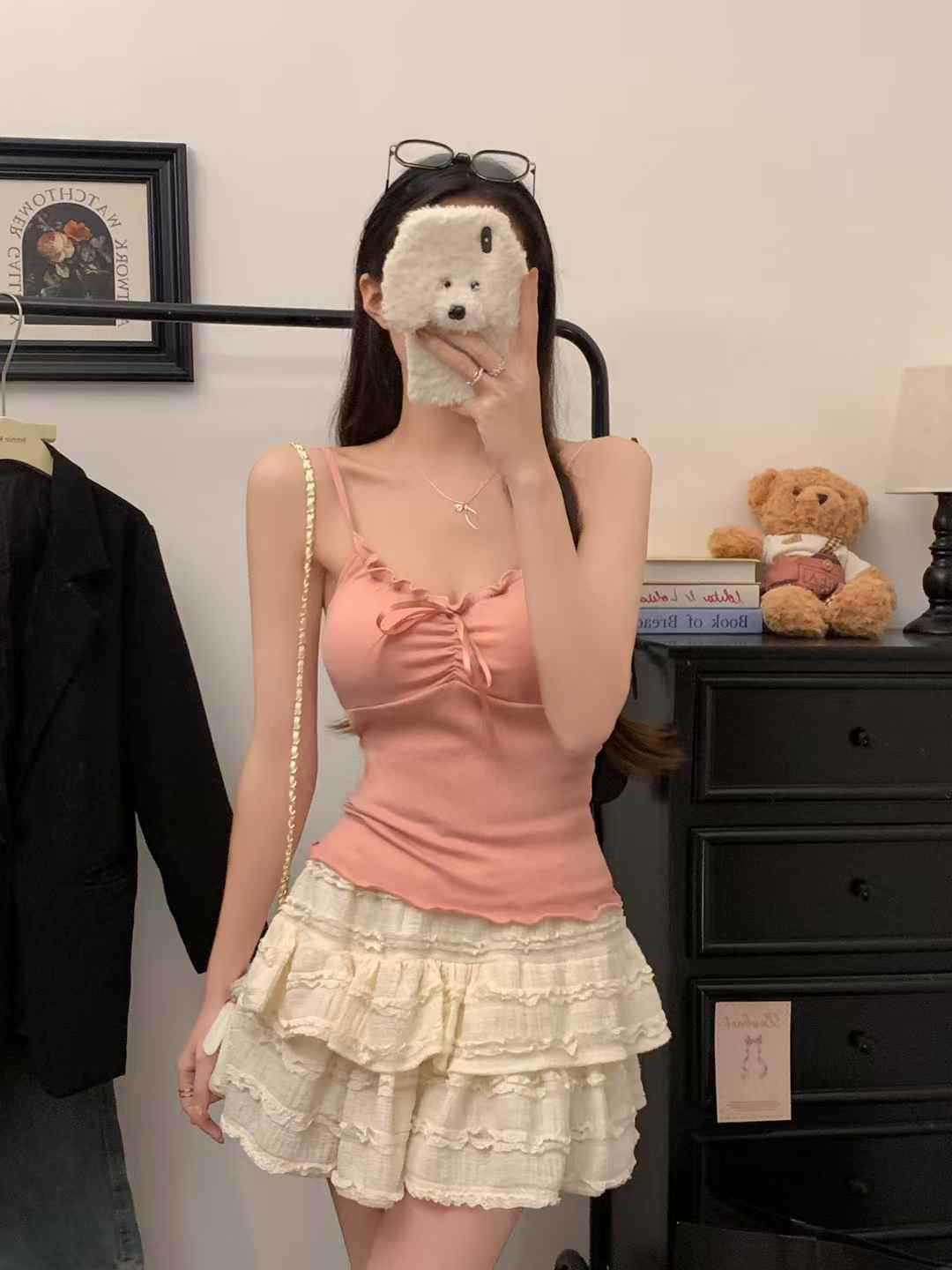 【纯欲天花板❗️蝴蝶结吊带背心】木耳边领口 + 胸前蝴蝶结设计,温柔又性感,轻松拿捏甜欲少女感,显瘦收腰完美勾勒腰腹线条,视觉上显瘦又显高,小背心女修身内衣百搭抹胸美背L