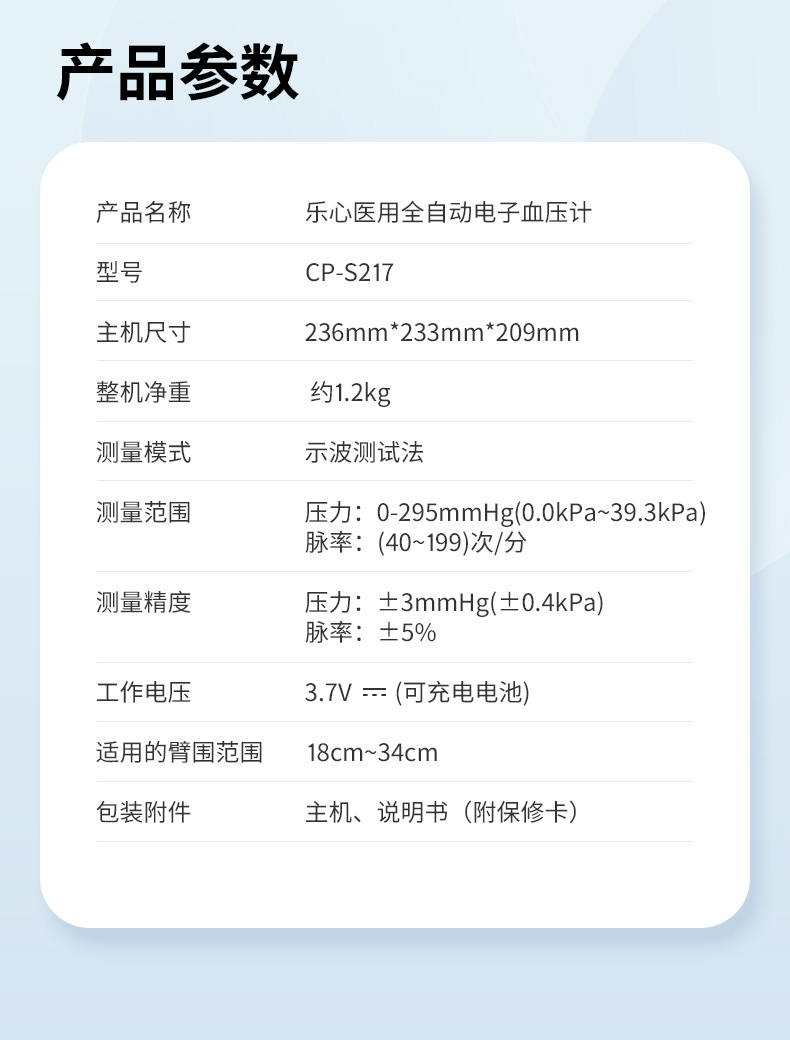 【积分兑换】乐心医用全自动电子血压计CP-S217臂筒式