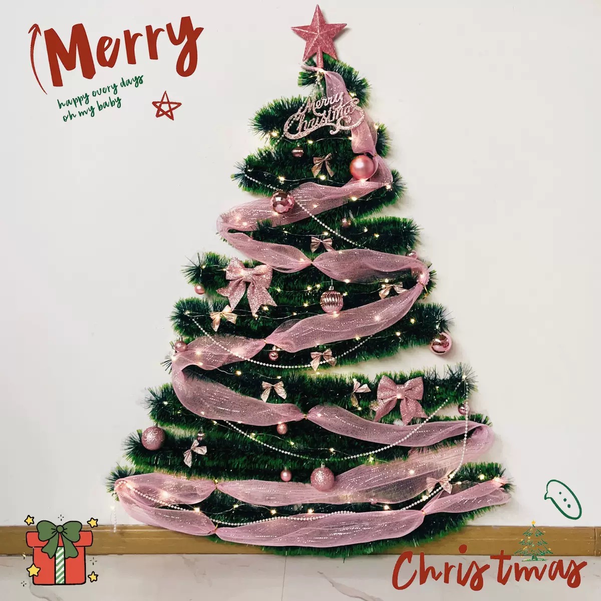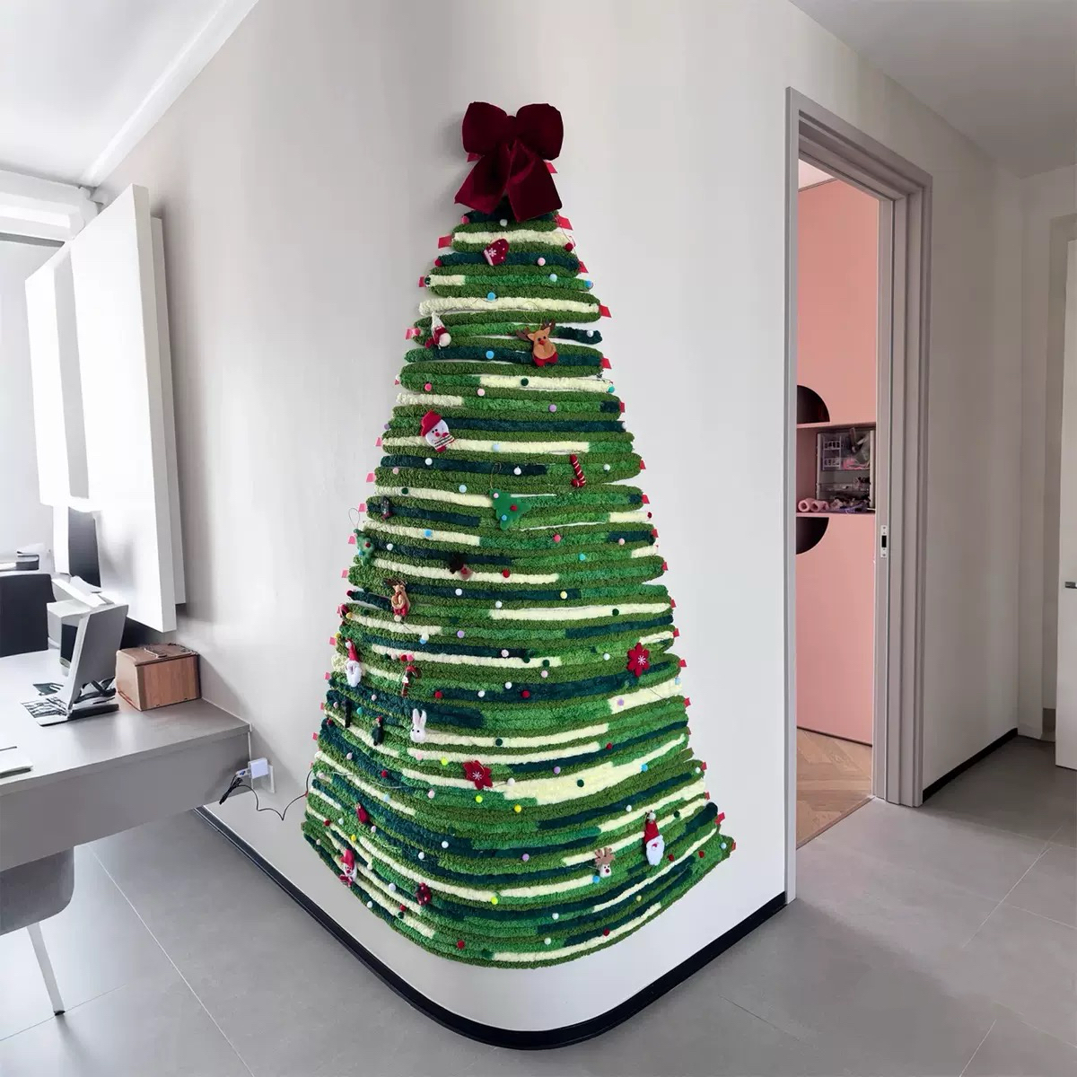 用柔软毛条把墙角变成圣诞森林