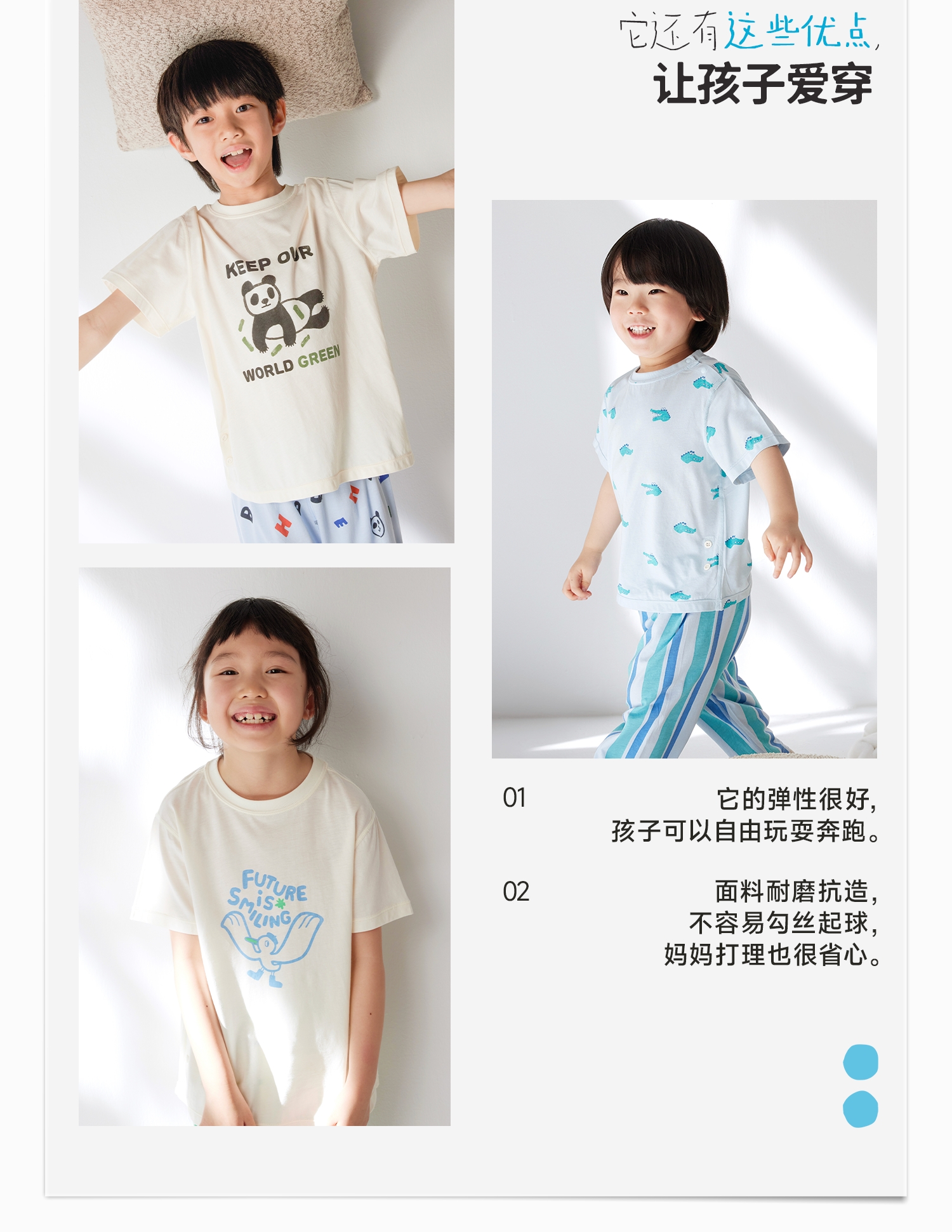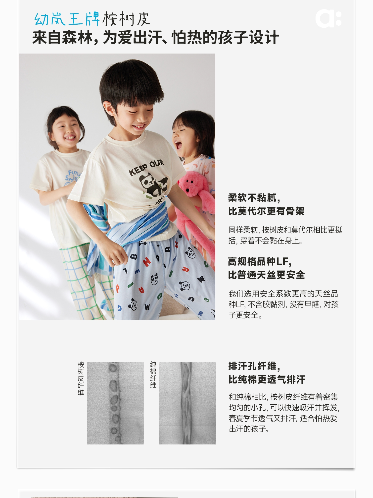 【好友特惠】幼岚「王牌桉树皮」柔软排汗透气印花家居服24春新儿童内衣套装ZY