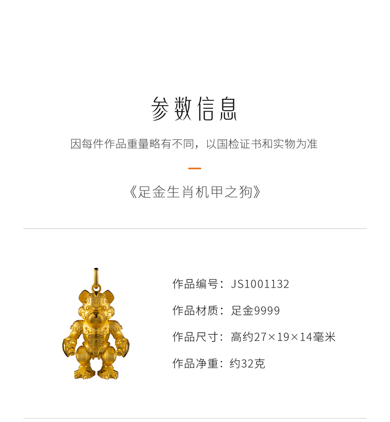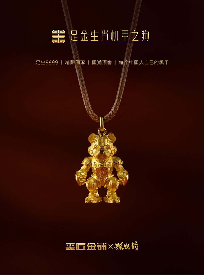 玺匠金铺《足金生肖机甲之狗》足金9999 吊坠项链生日礼物