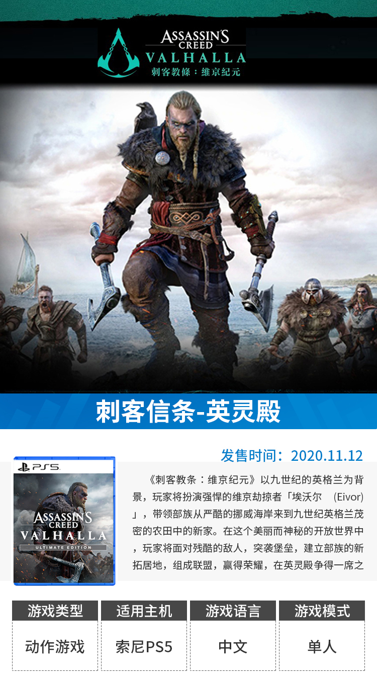 【畅玩卡可租】二手PS5游戏 刺客信条 英灵殿 维京纪元 中文版
