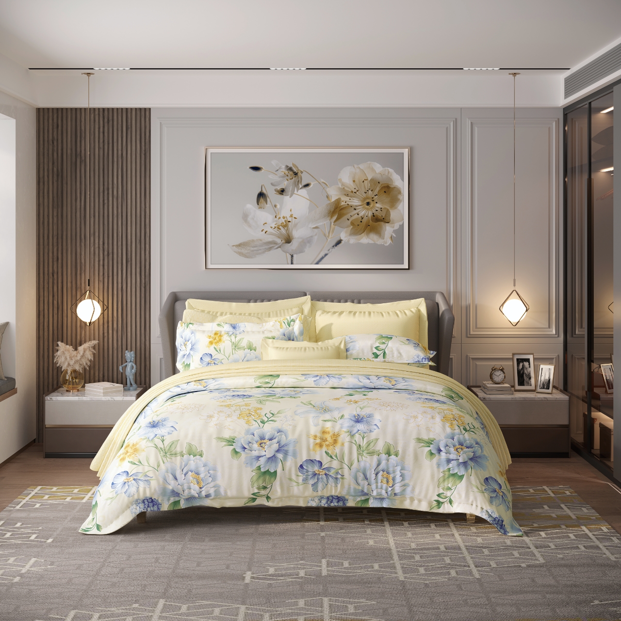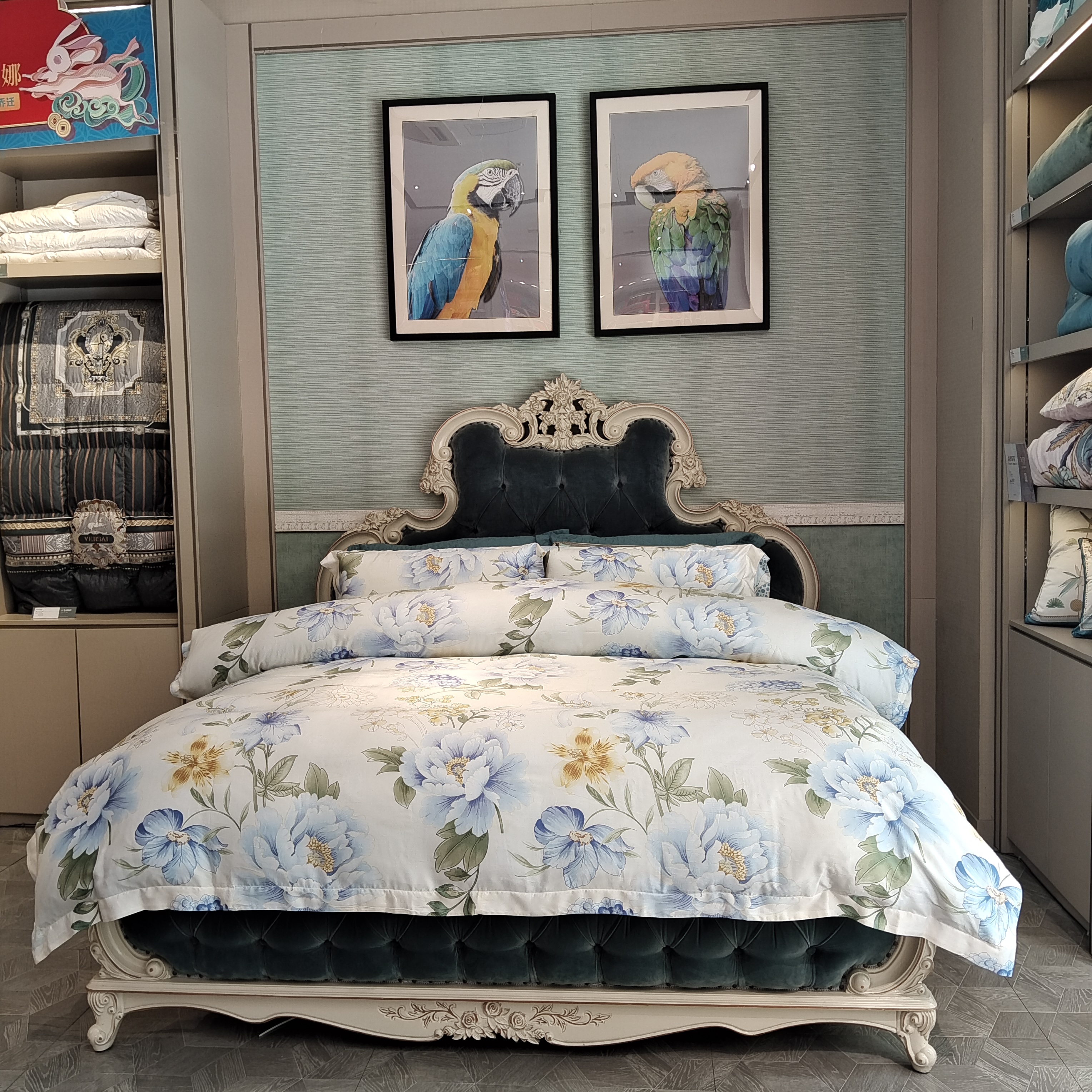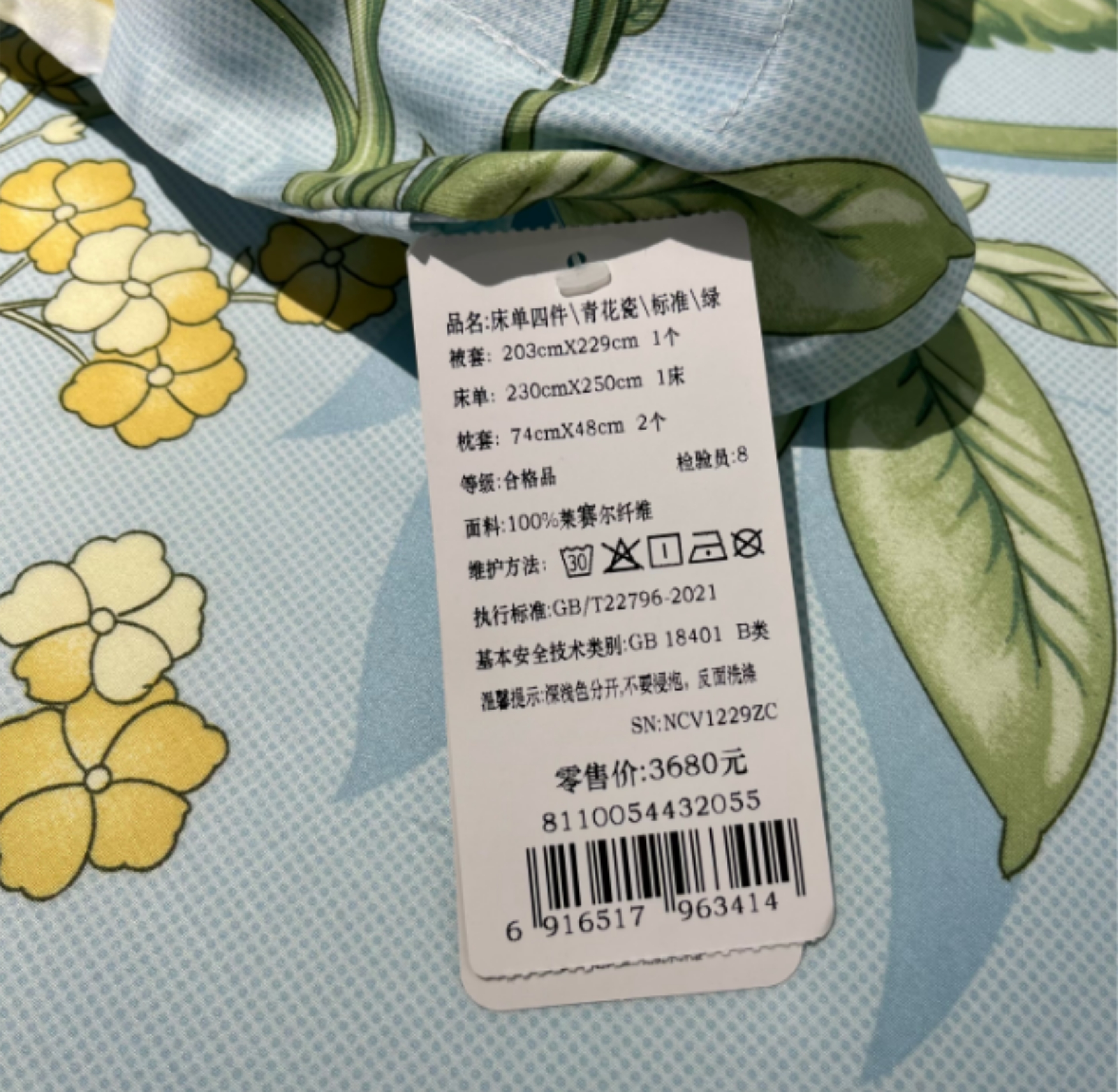 【6楼】富安娜床单四件\青花瓷,黄,零售价3680~3880元,活动价1599/1699元
