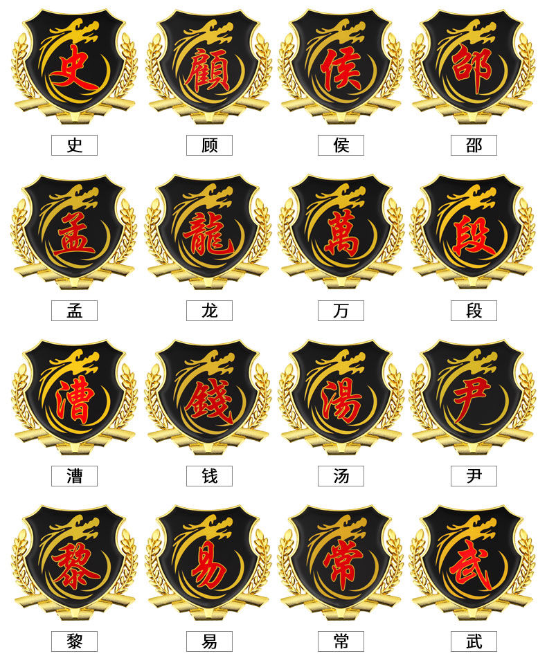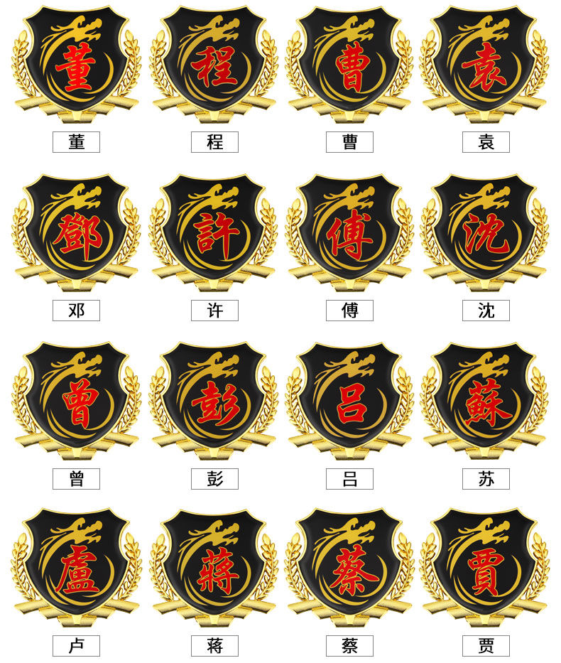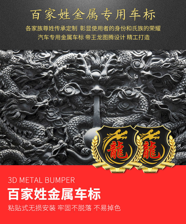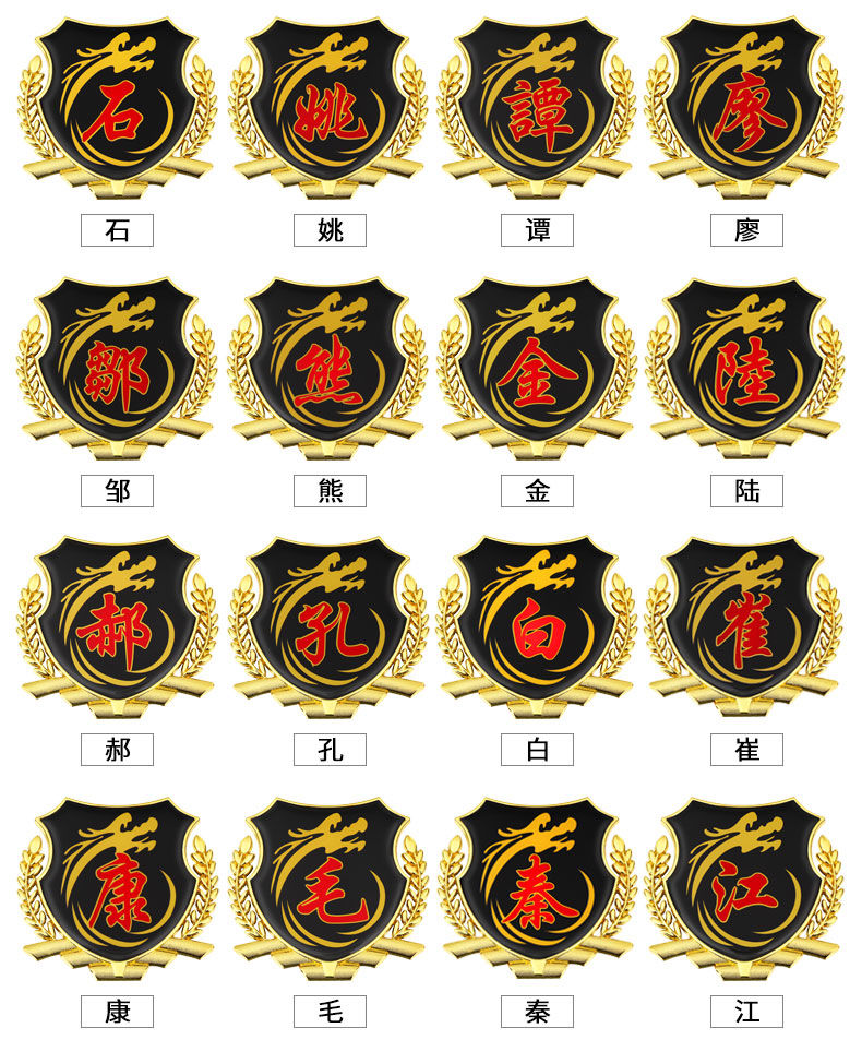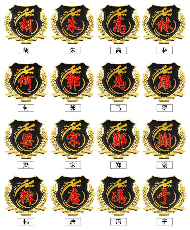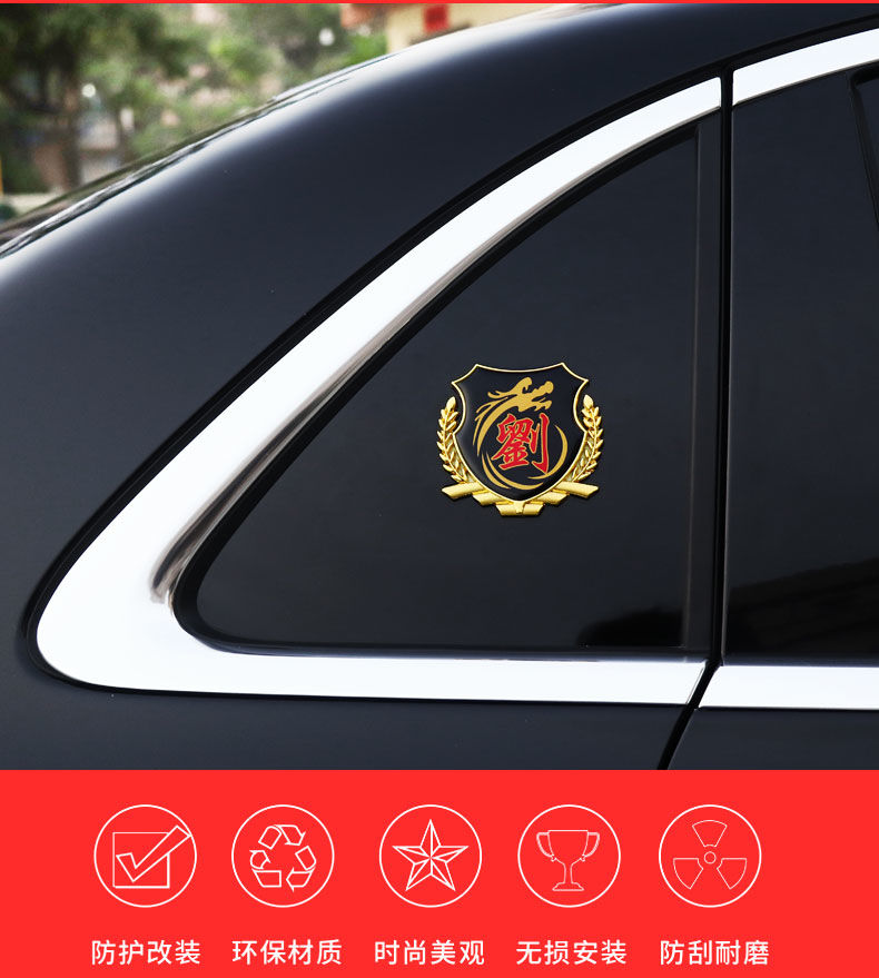 百家姓车贴 创意个性侧窗贴大号金属立体侧标VIP尾标