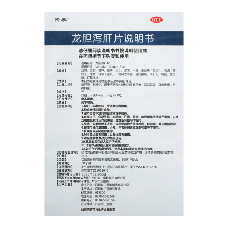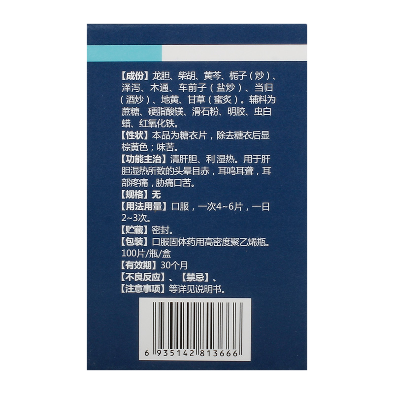 愉泰 龙胆泻肝片 100片*1瓶/盒清肝胆去湿热头晕目眩耳聋耳鸣