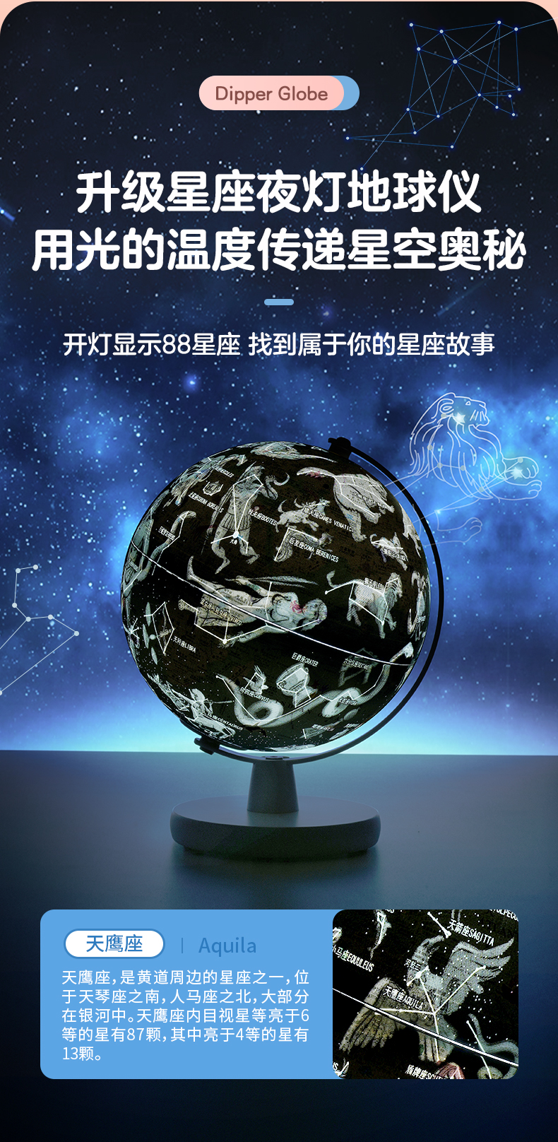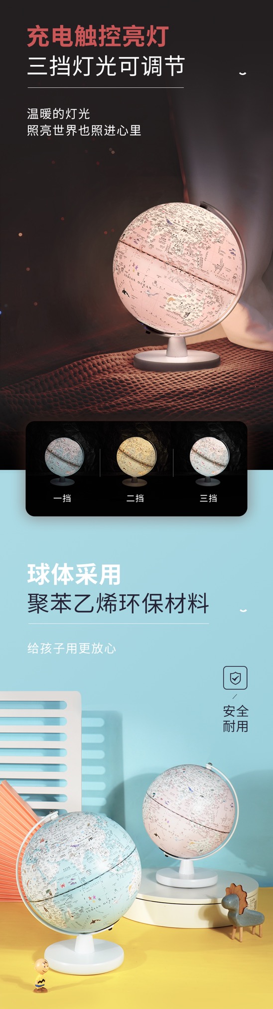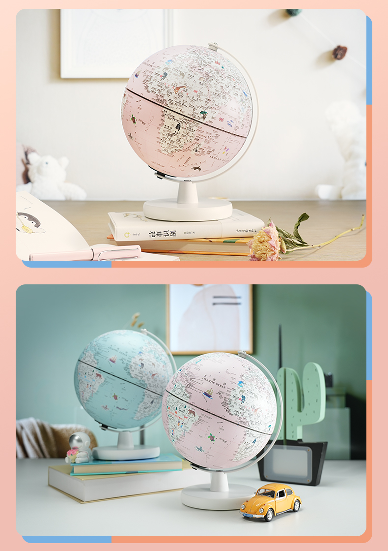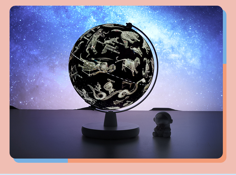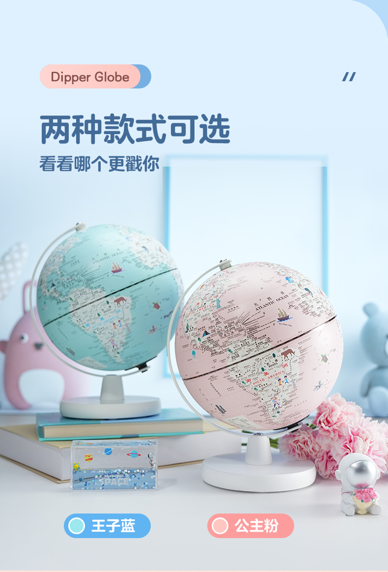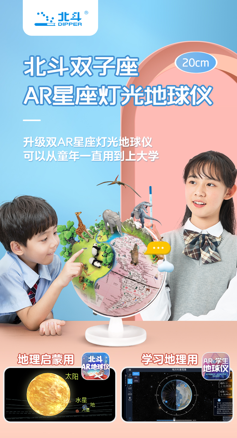 【享中国地图+世界地图+片式放大镜】北斗双子座触控星座灯光AR地球仪 马卡龙色20cm