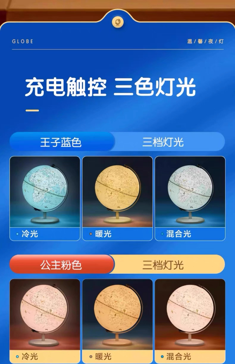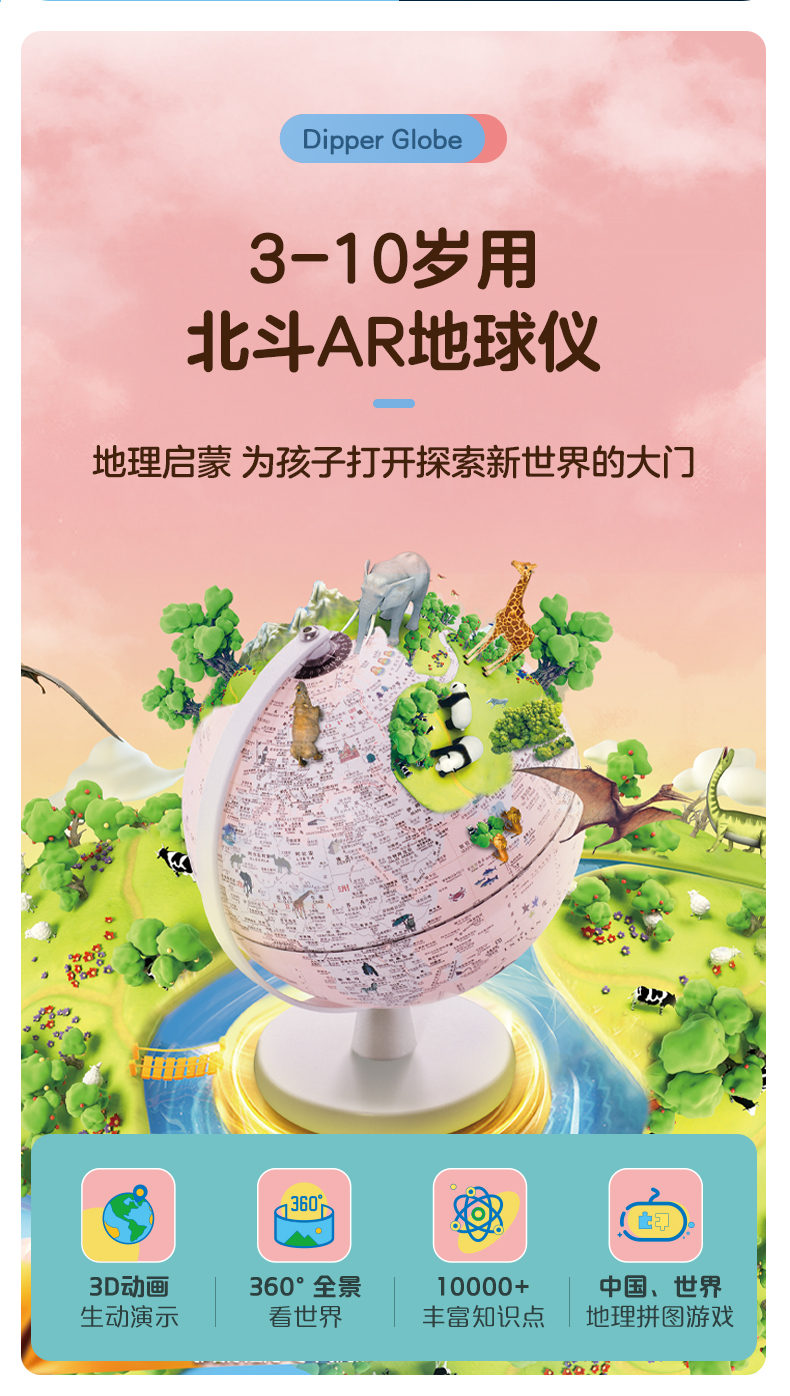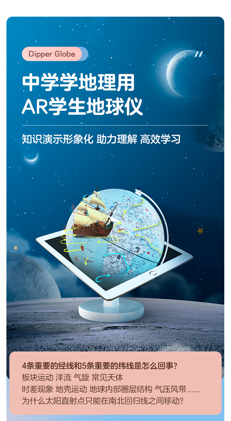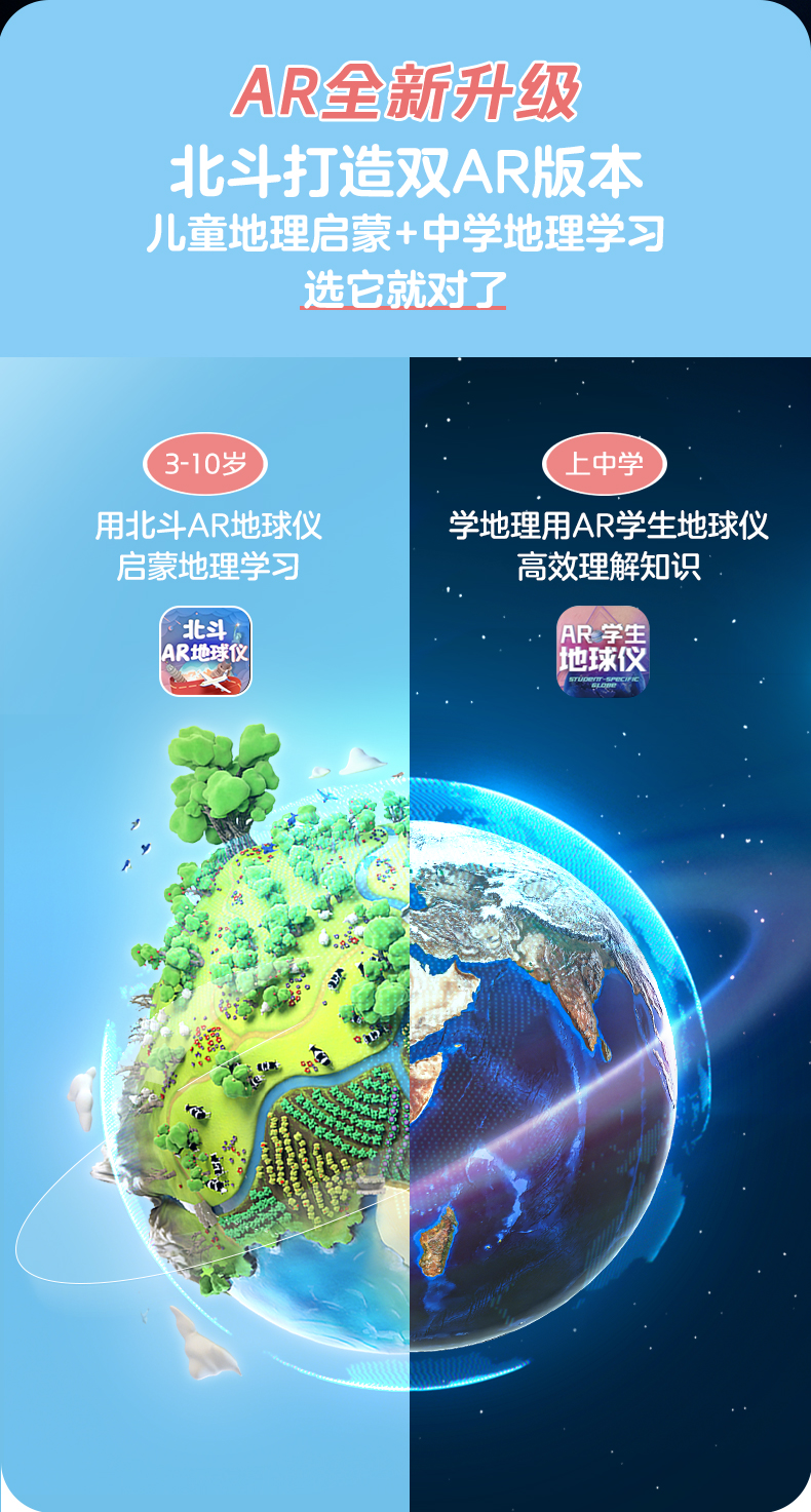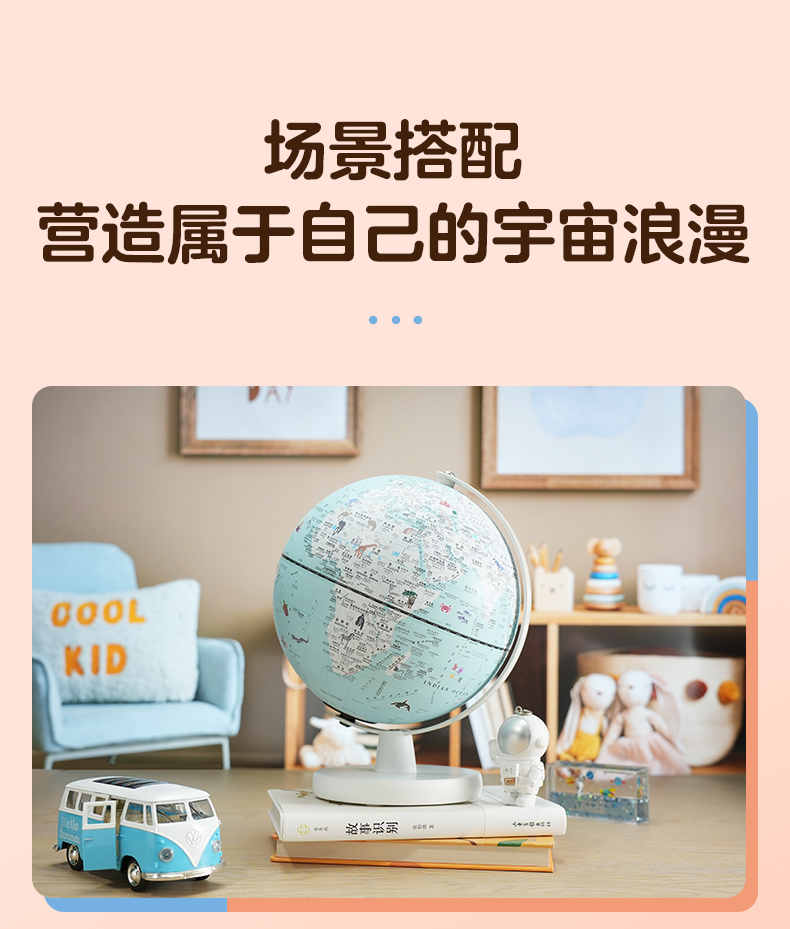 【享中国地图+世界地图+片式放大镜】北斗双子座触控星座灯光AR地球仪 马卡龙色20cm