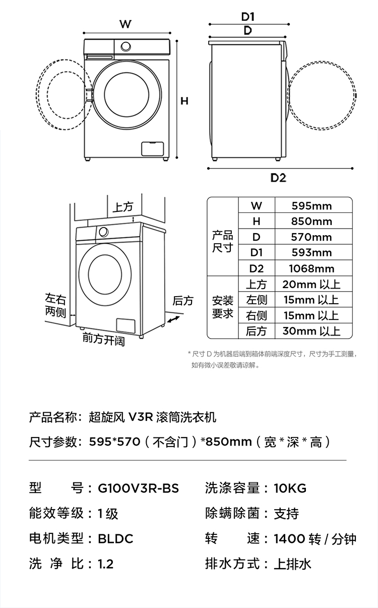 【新品上市】TCL超旋风V3R10公斤1400转变频滚筒 G100V3R-BS