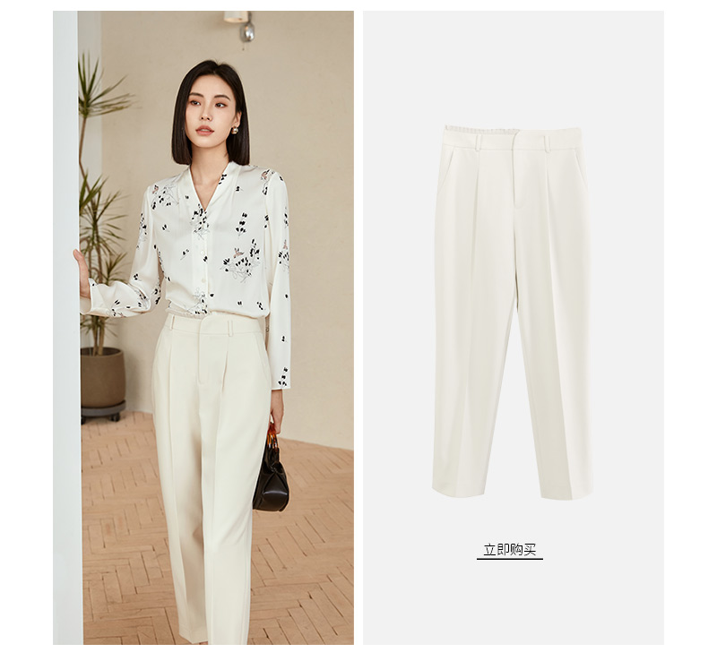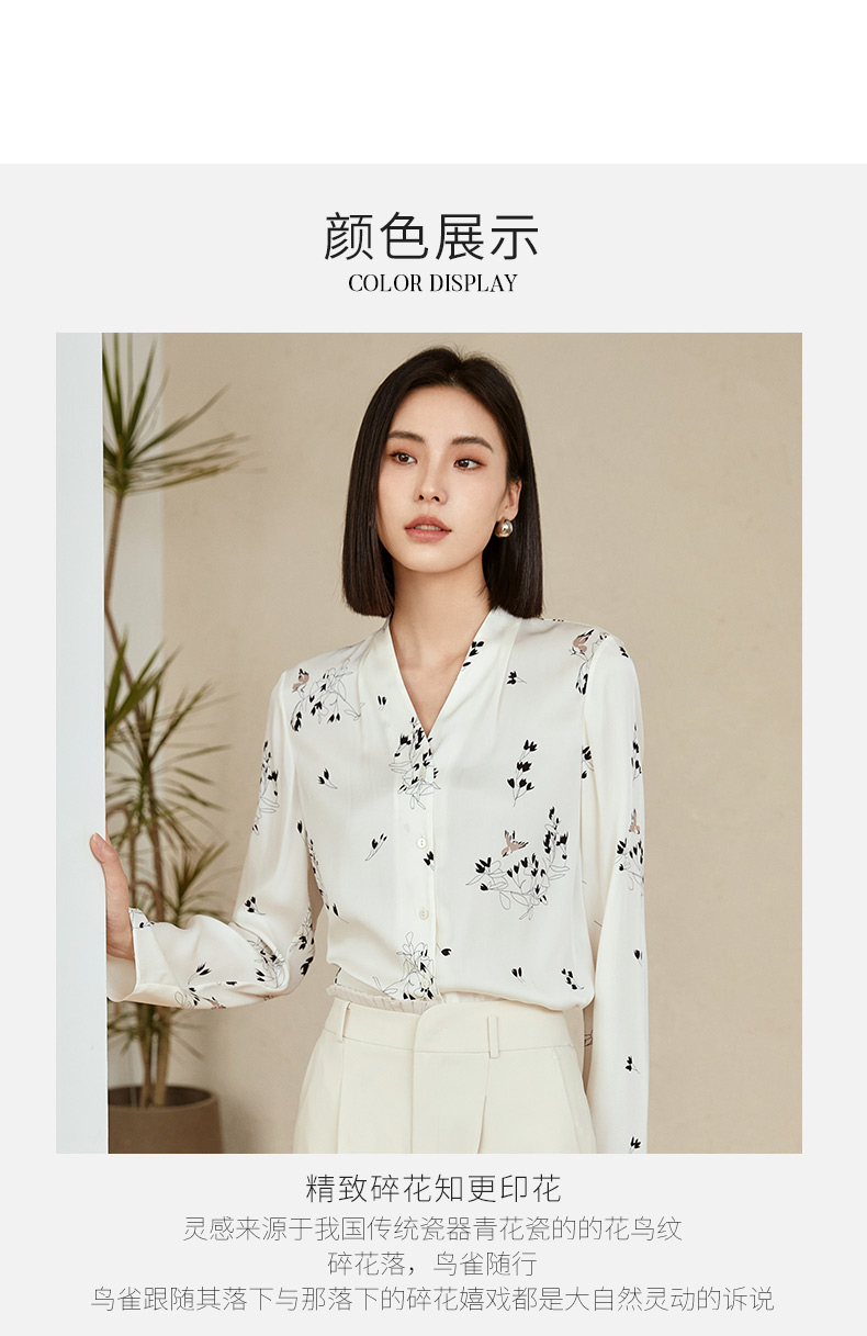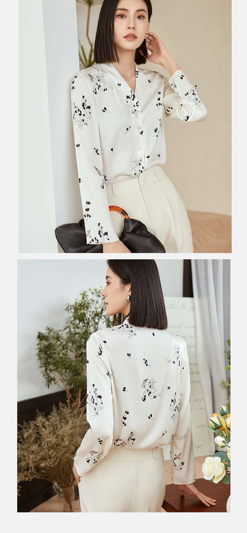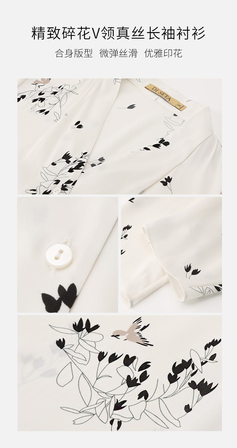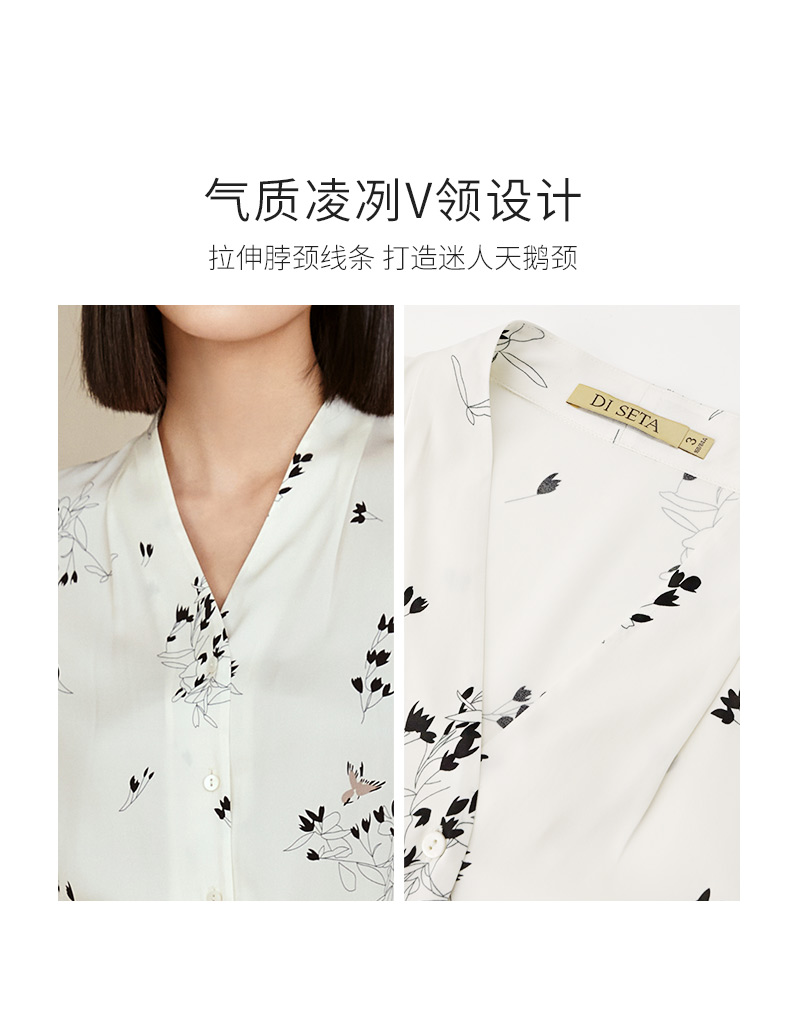 玳莎印花V领长袖真丝衬衫女士秋季款优雅气质桑蚕丝上衣 DC31301