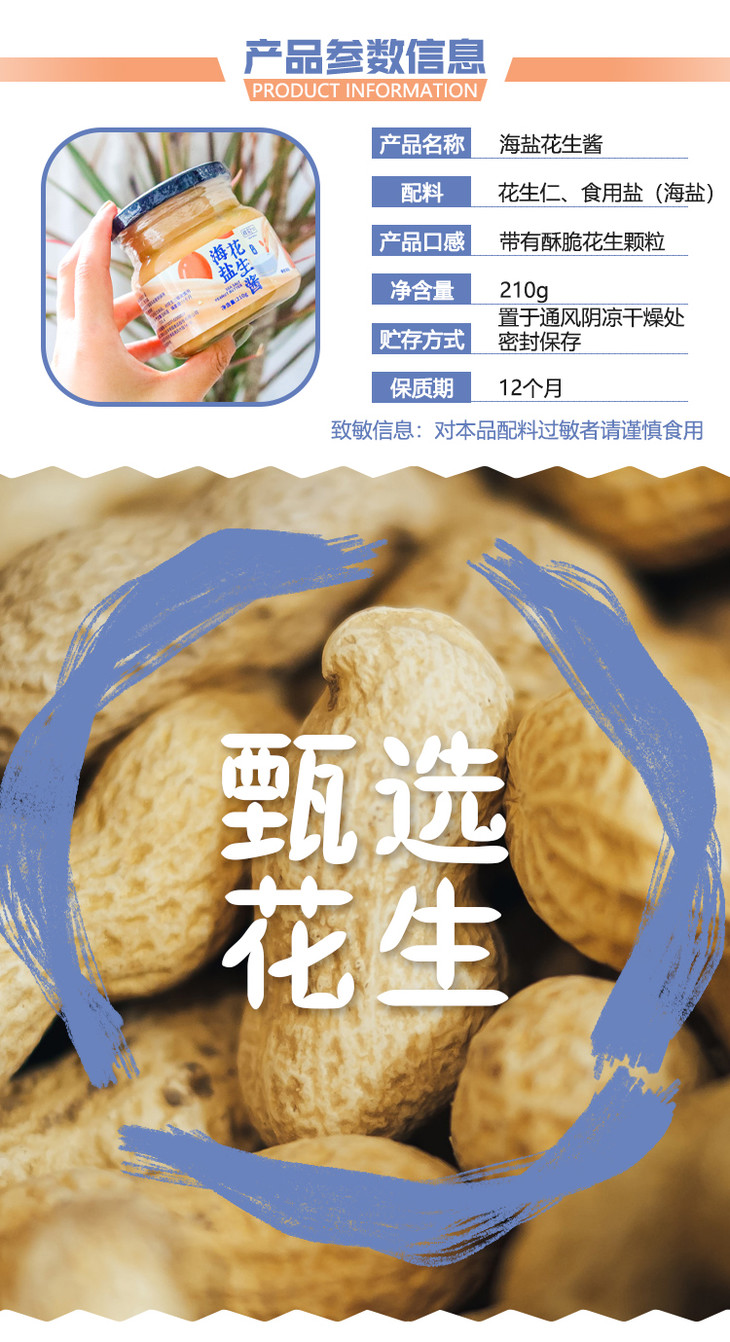传统石磨手艺,无添加❤️❤️浓浓花生香的海盐花生酱(每瓶210g*2瓶)