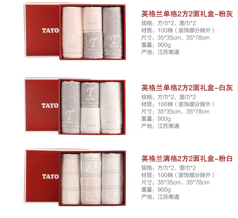 【6F】多样屋(TAYOHYA) 多样屋蓬松柔软护肤吸方巾面巾浴巾套装自用送礼团购毛巾礼盒 单格毛巾礼盒