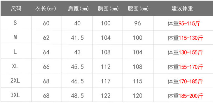充绒量S35g,M37g,L39g,XL41g,2XL43g,3XL45g