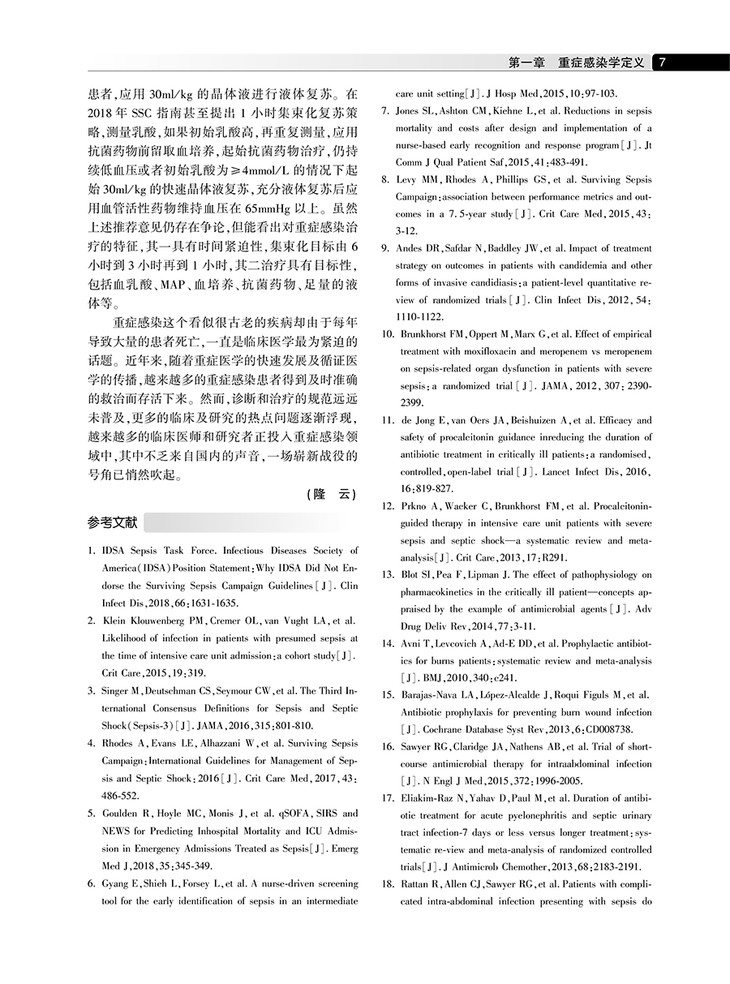 从2004年国际重症与感染专家们推出拯救脓毒症行动,制定指南并每四年更新,旨在规范临床诊疗,以改善患者预后。指南提出的推荐意见是根据循证医学的证据来的,并来带动促进重症医学理念不断更新进步。当前每年都有大量的临床研究,指南将这些研究进展进行循证分类,提出专家推荐意见。该书以拯救脓毒症行动的推荐意见为基础,结合临床诊断思路和治疗流程各个环节,及少见和疑难感染的诊治,进行全面深入阐述,以期解决临床实际问题。