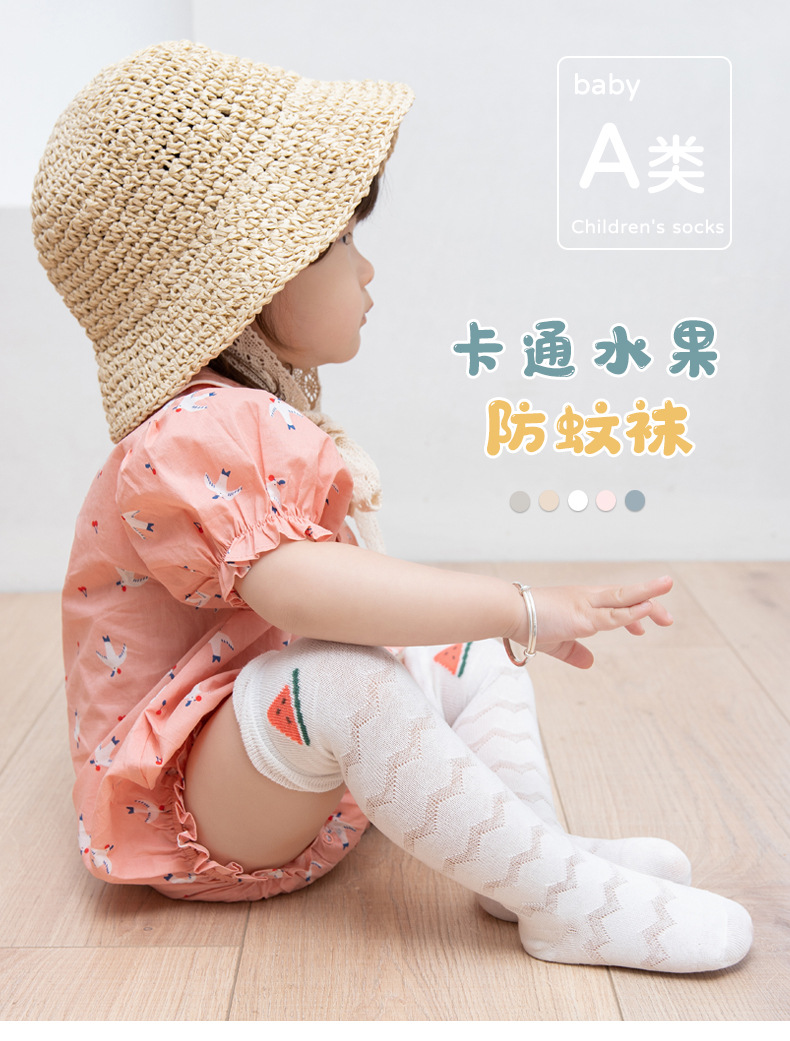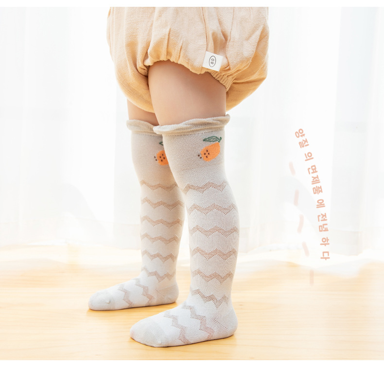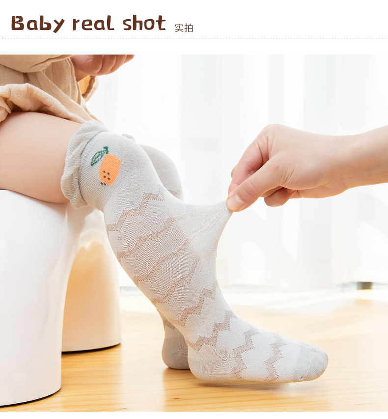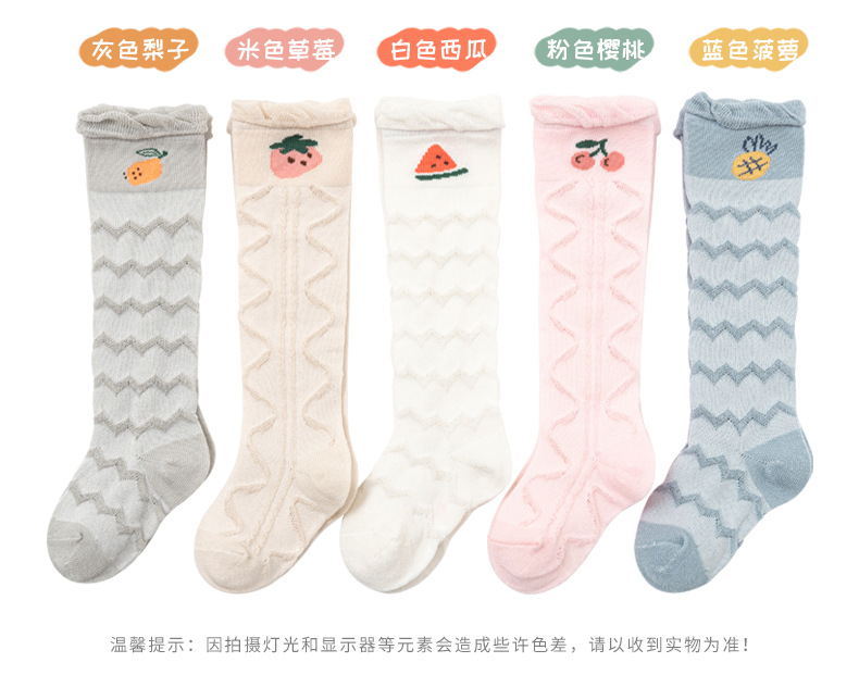 【2双装 卡通水果防蚊袜】春夏A类松口薄棉网眼卡通水果防蚊袜宝宝高筒袜婴儿长筒袜儿童袜子