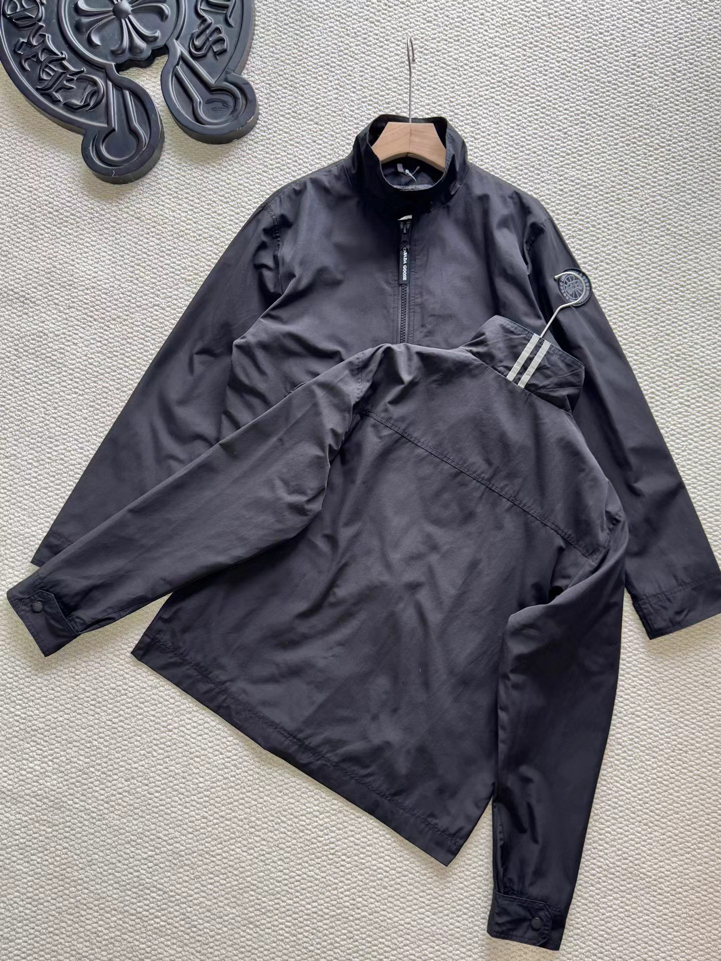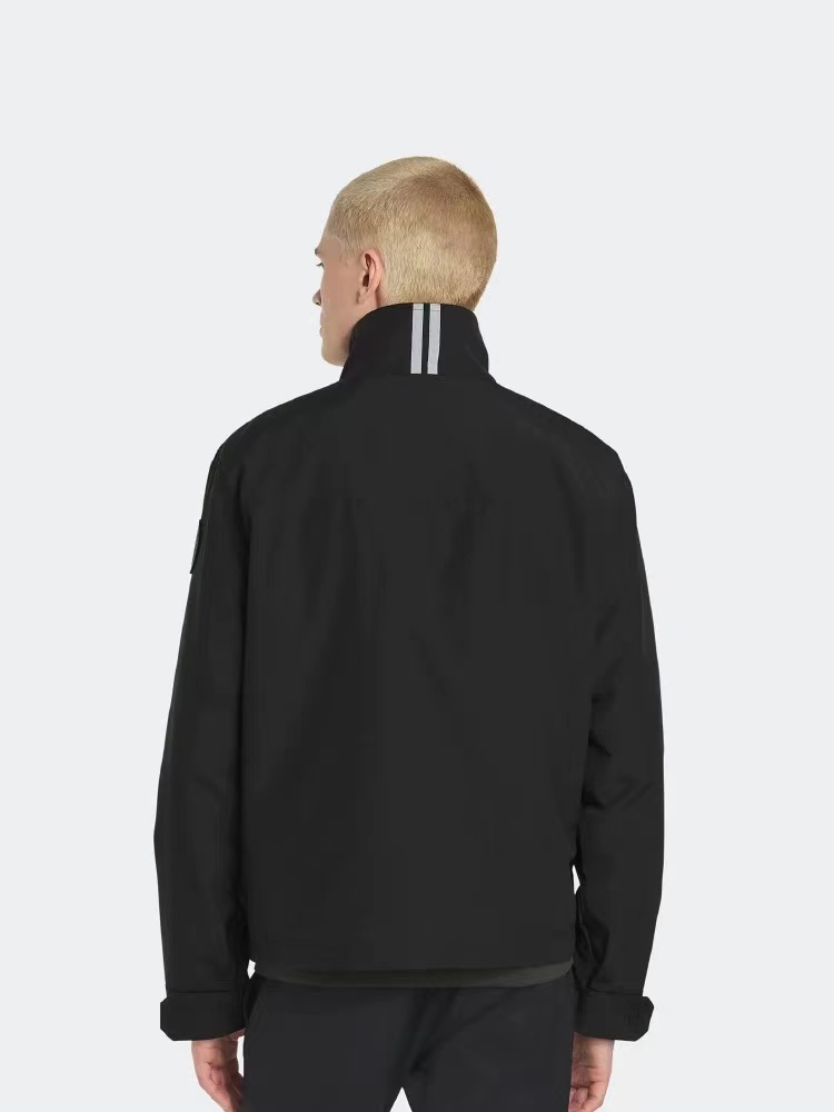 新款Rosedale 男士黑标夹克 中性风格,女生也可以hold住喔,利用标志性的Arctic Tech 面料打造出了适合在温度适宜的环境中穿着的换季时节常备单品,简约不简单,时尚大气特点采用带纽扣的高领设计拉绒针织元素可保护下巴正面中间有品牌拉链,内衬剪裁平整利落背领设计有标志性双条纹反光细节和可调节袖口两个带拉链的外部斜口袋是一款兼户外休闲的B备单品