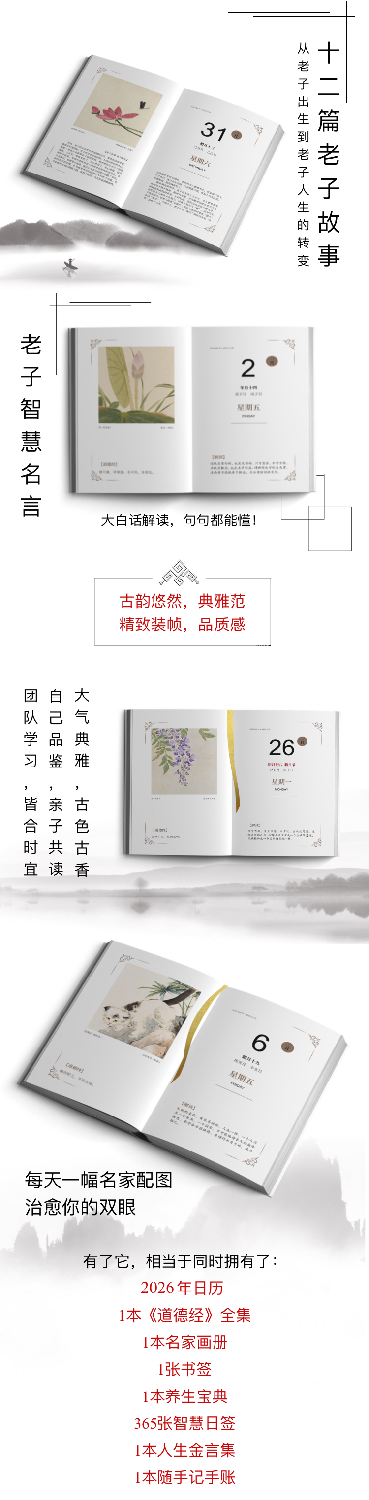 【2026日历】老子智慧日历 锁线精装 | 修身、养身,每天进步一点点!