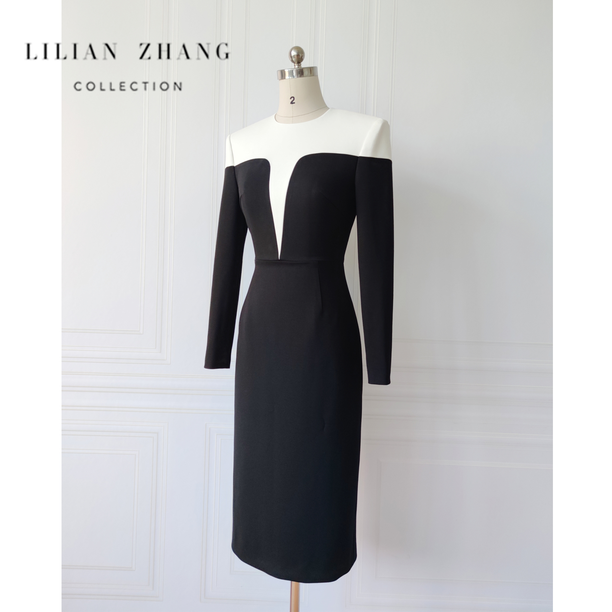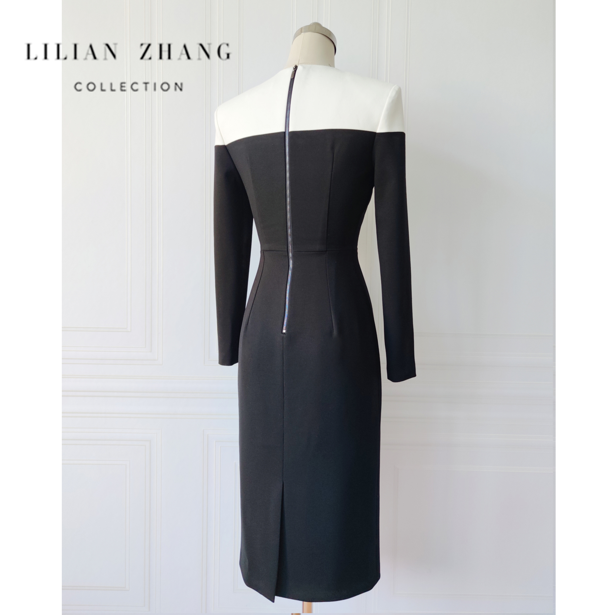定制—都市力量—复古新潮优雅黑白经典拼接包臀TSL连衣裙 2301103