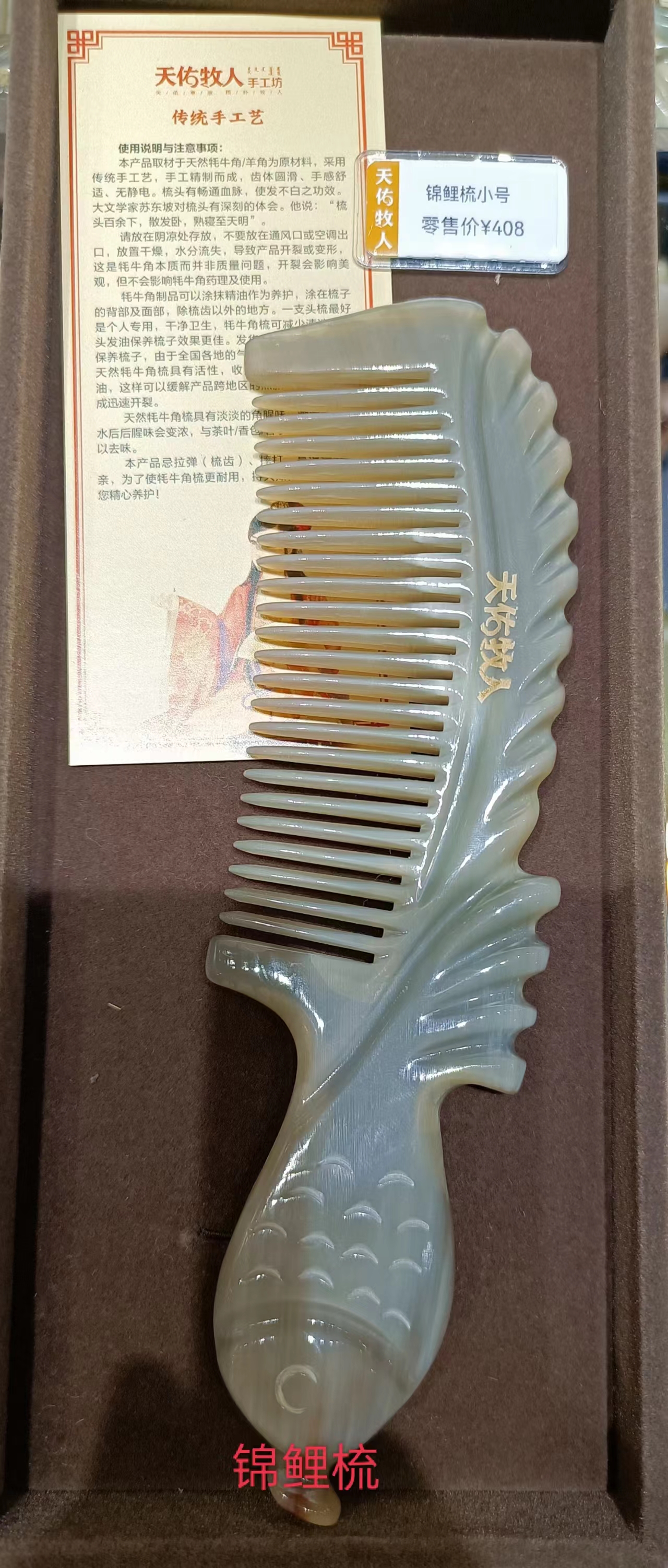 注:因为角梳的制作采用真牦牛角为原材料,故我们无法保证两把梳子颜色一模一样,款式相同但颜色有差异,感谢您的理解。祝您购物愉快!