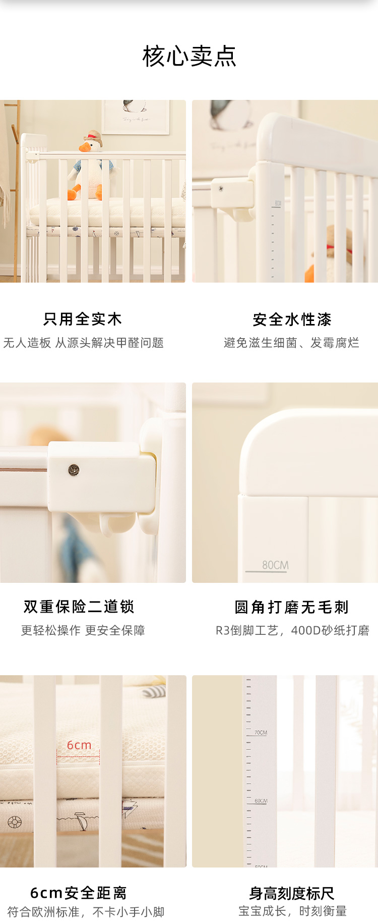 qborn白色婴儿床(不含床垫)【LY】1件包邮厂家直接发货,请单独下单购买)