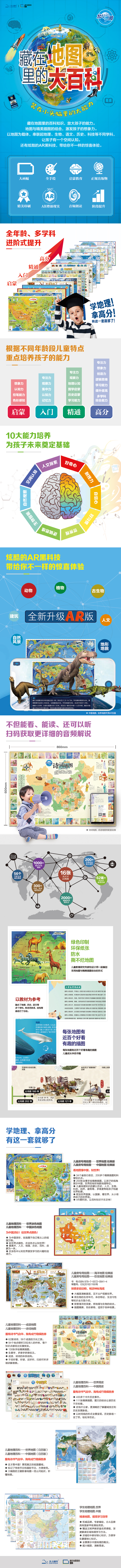 《藏在地图里的大百科》 8套共16幅图 2000个科普知识点 200个成语典故 62首中小学诗词 全新升级AR版