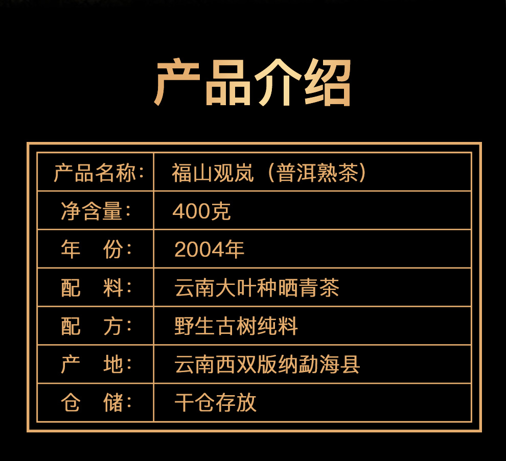 爻牌丨福山观岚 野生古树纯料 干仓存化 陈香 木质香 普洱熟茶 熟普 2004年原料 400g