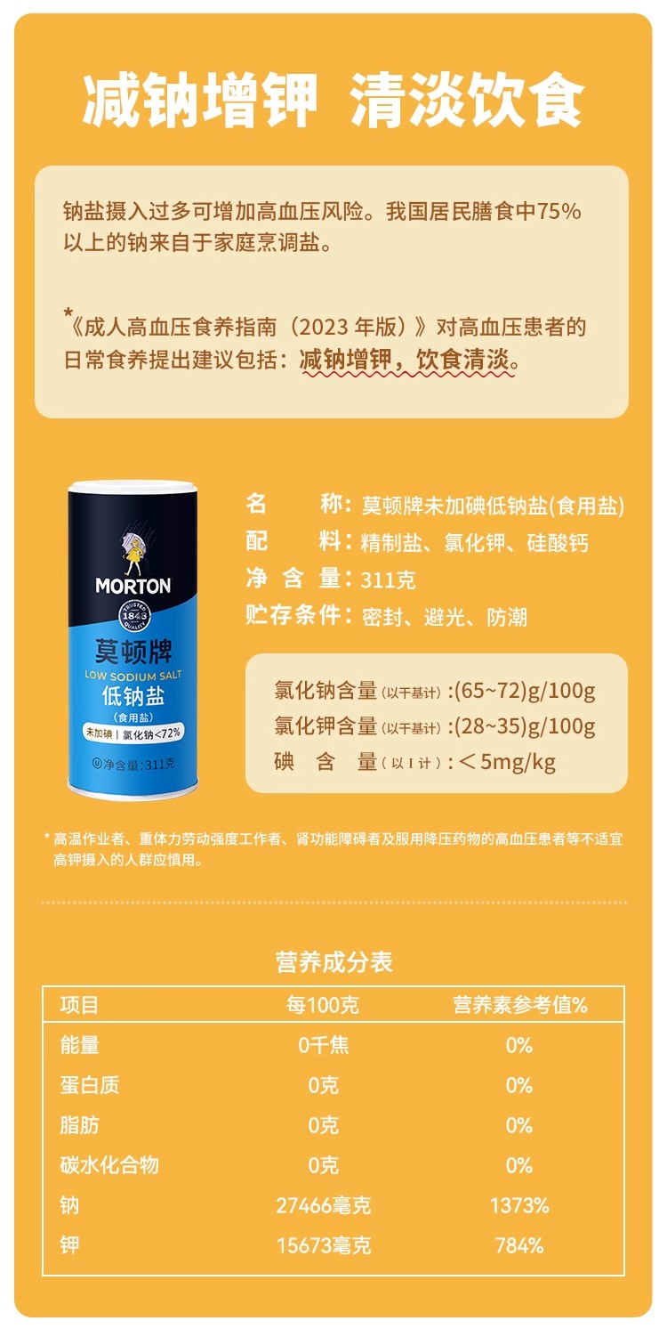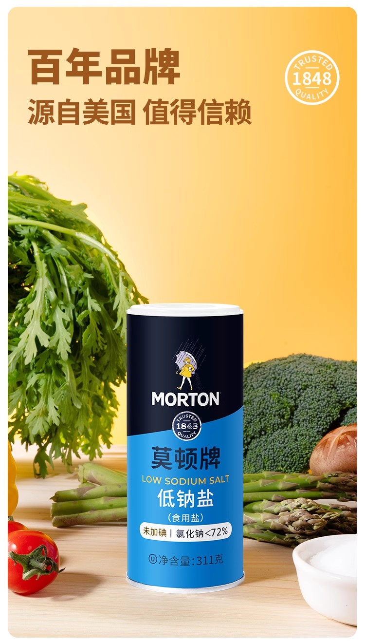中盐莫顿未加碘低钠盐311g*1罐/2罐/4罐