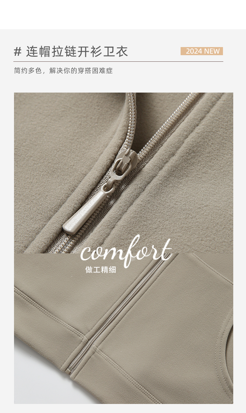 【2024秋冬新品】韩系连帽拉链卫衣 软糯亲肤带口袋休闲长袖外套