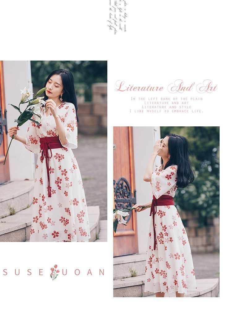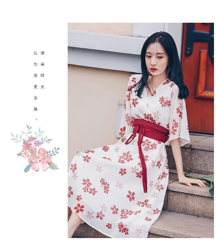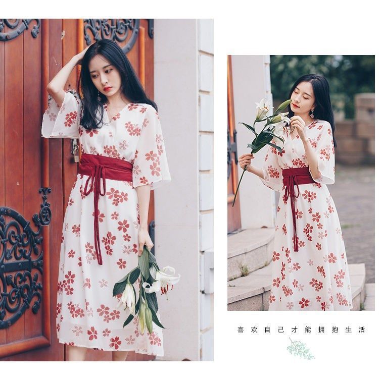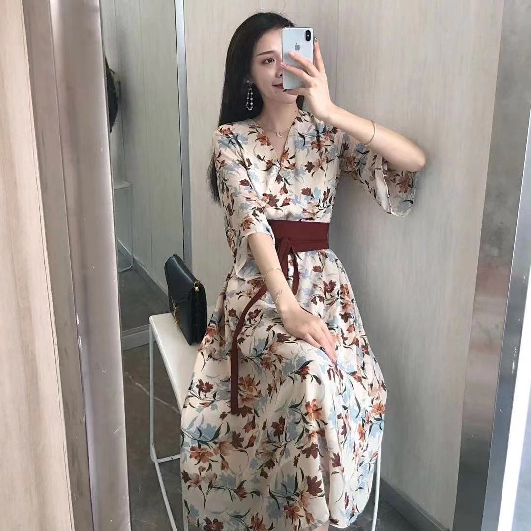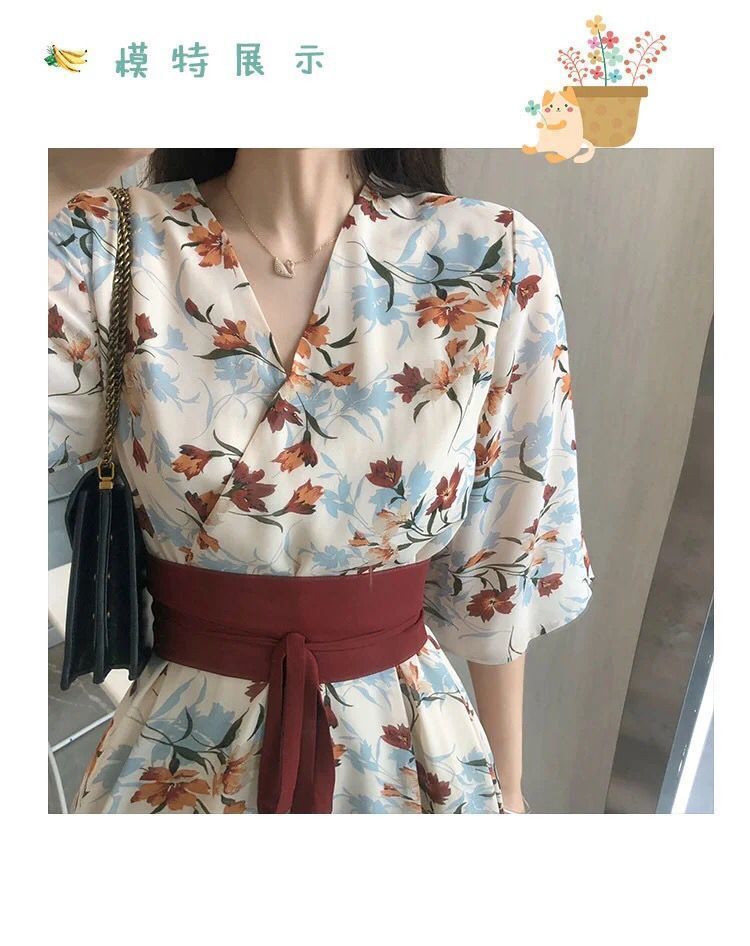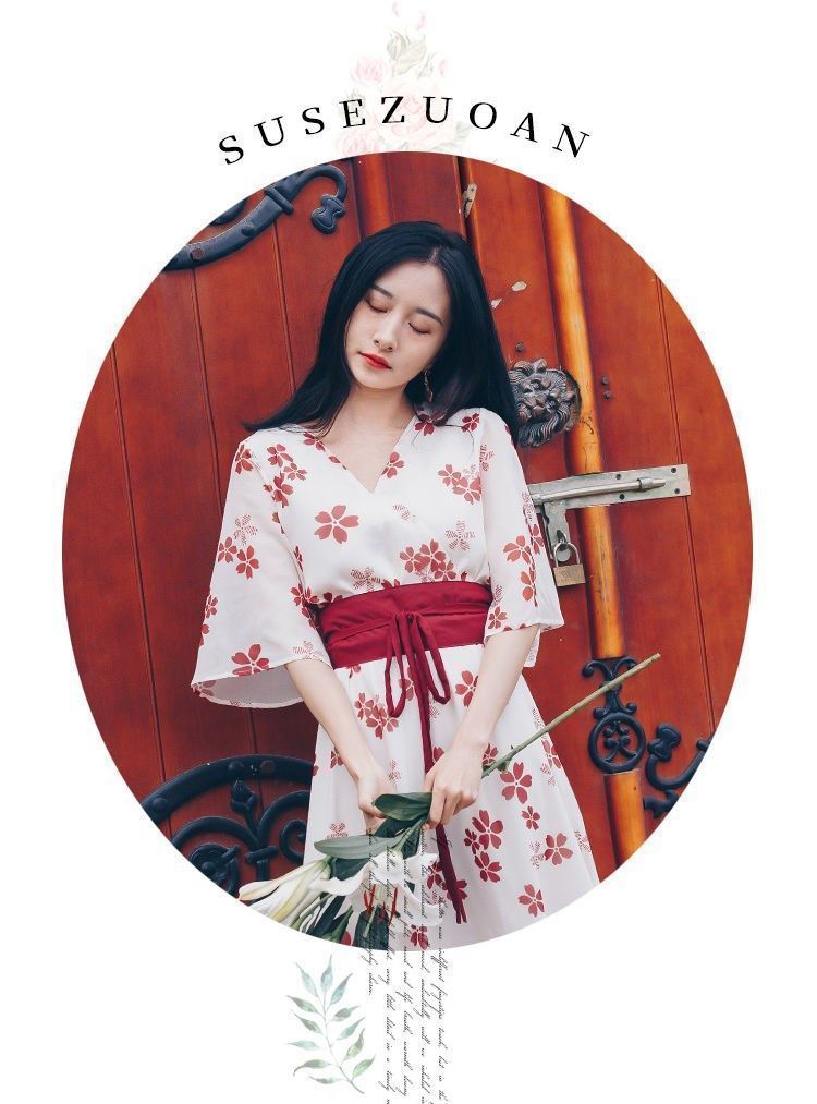 新款爆款女神同款2021新腰带连衣裙收腰绑带布汉服改良版复古中国风小个子碎花七夕情人节