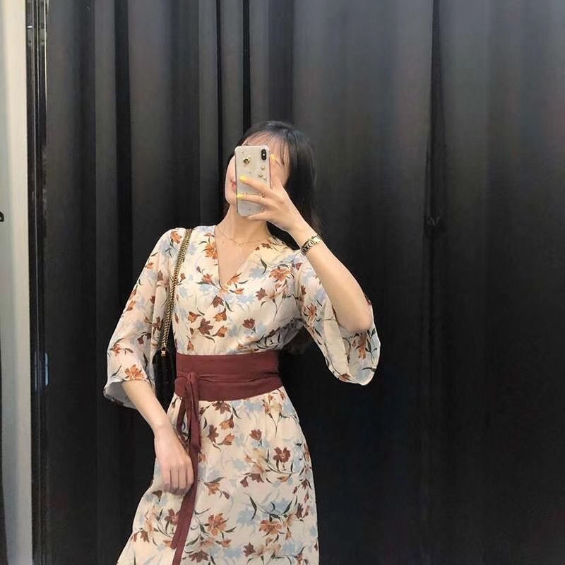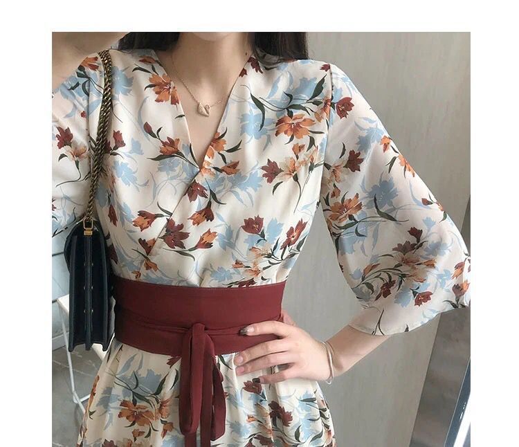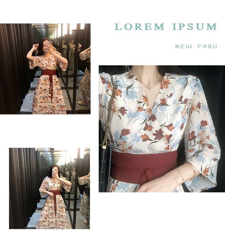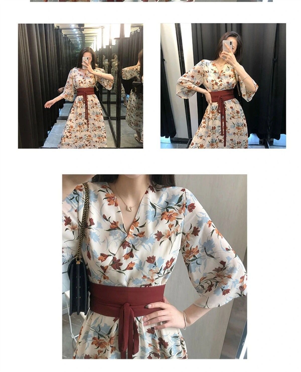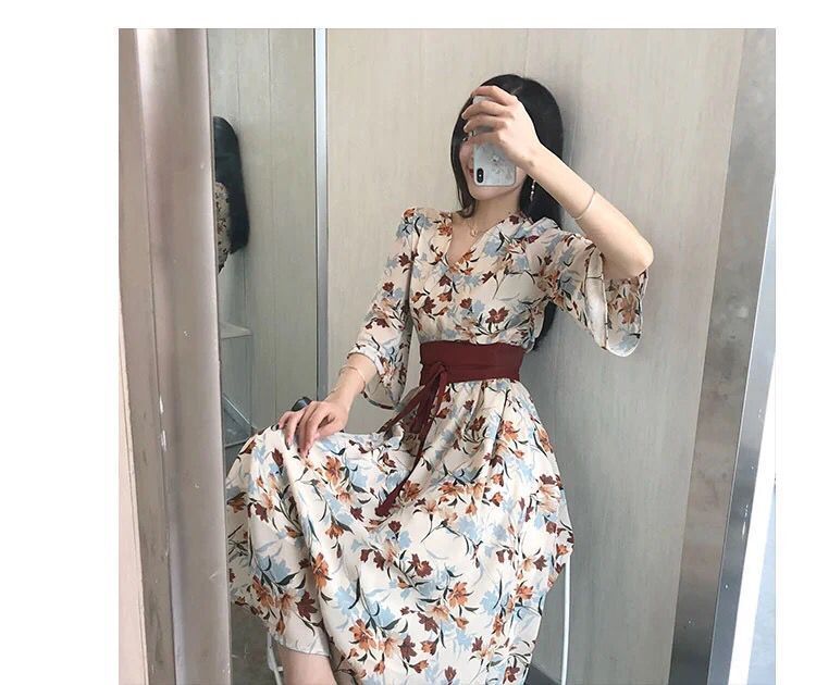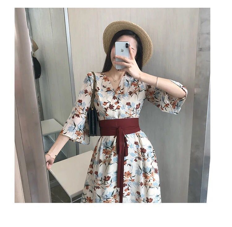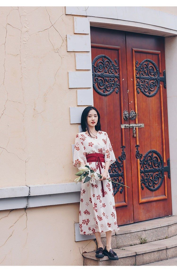 新款爆款女神同款2021新腰带连衣裙收腰绑带布汉服改良版复古中国风小个子碎花七夕情人节