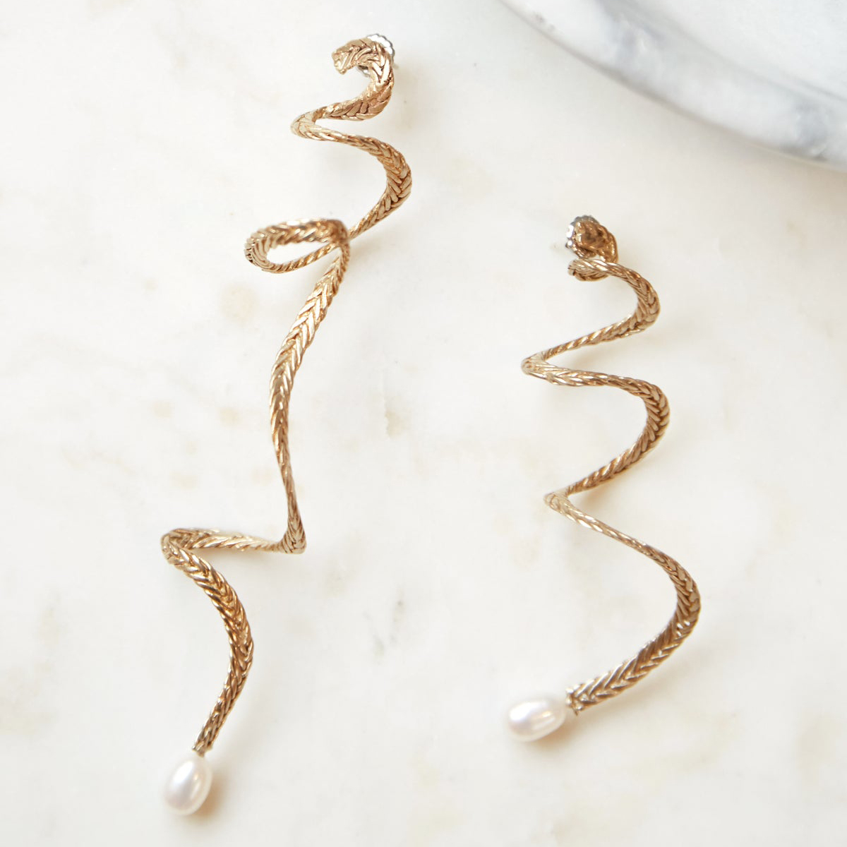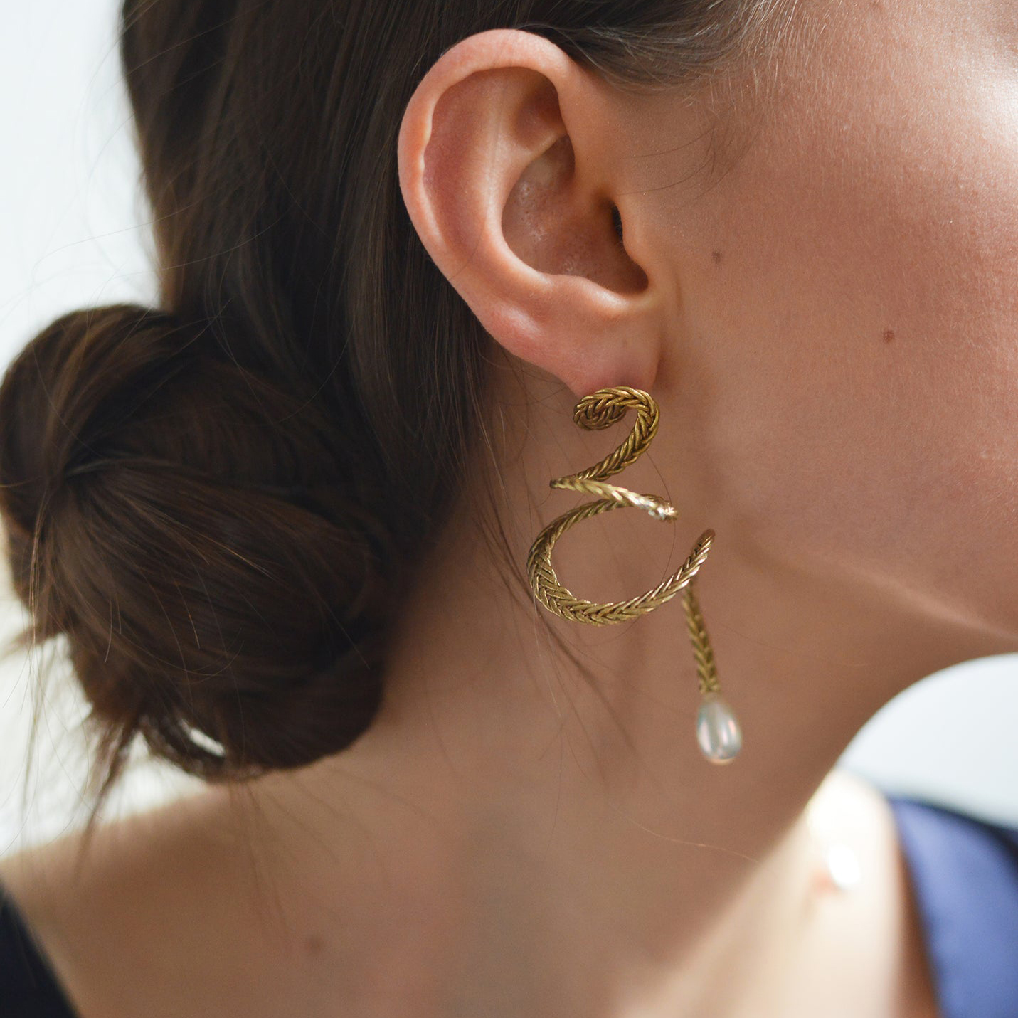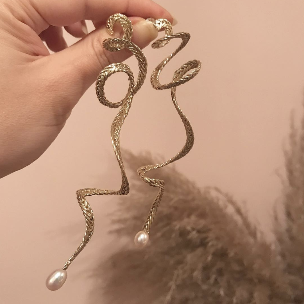 北京仓|STVDIO-Anais-编织 鱼尾 珍珠 耳环(不对称)[美国设计师]