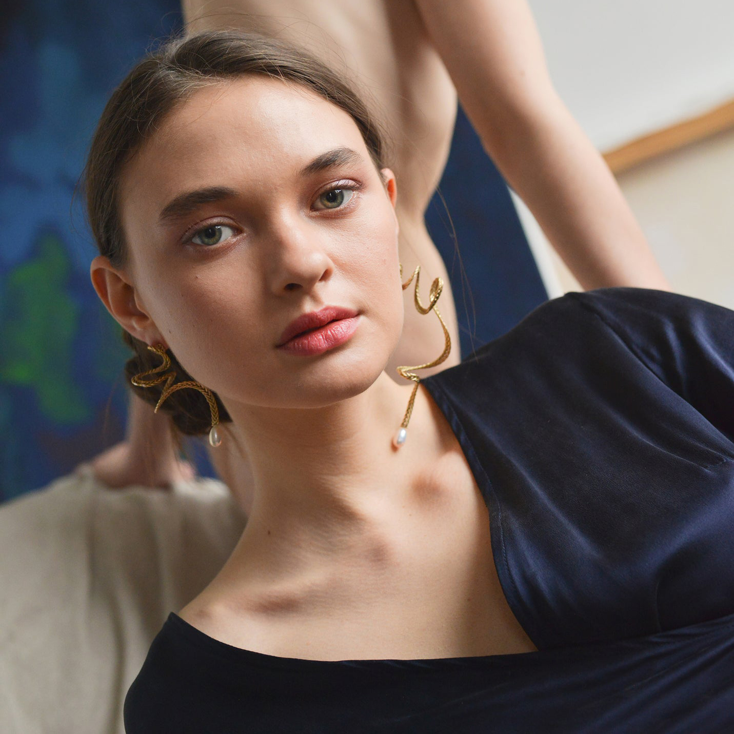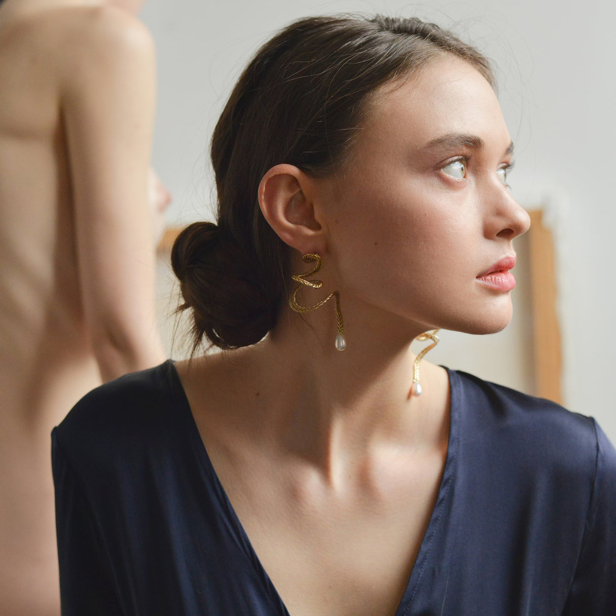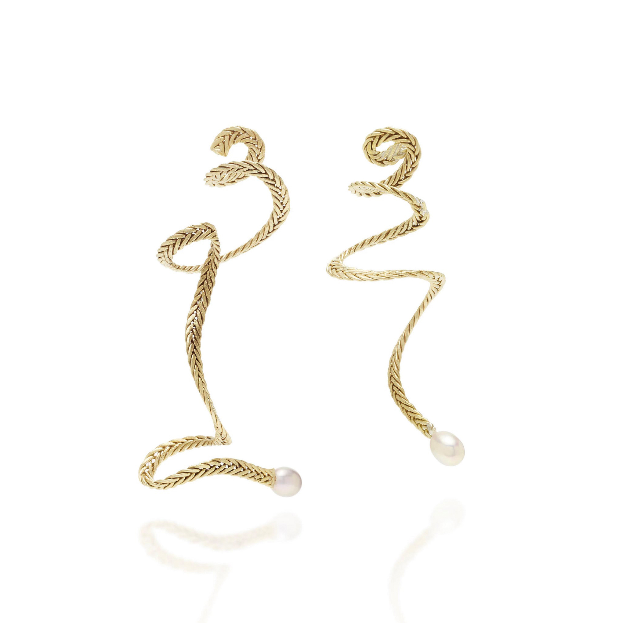 北京仓|STVDIO-Anais-编织 鱼尾 珍珠 耳环(不对称)[美国设计师]