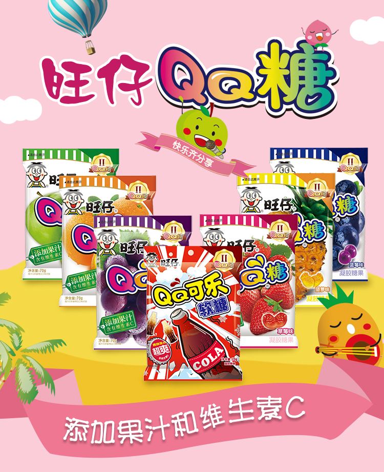 旺仔QQ糖果汁软糖水蜜桃添加果汁20g