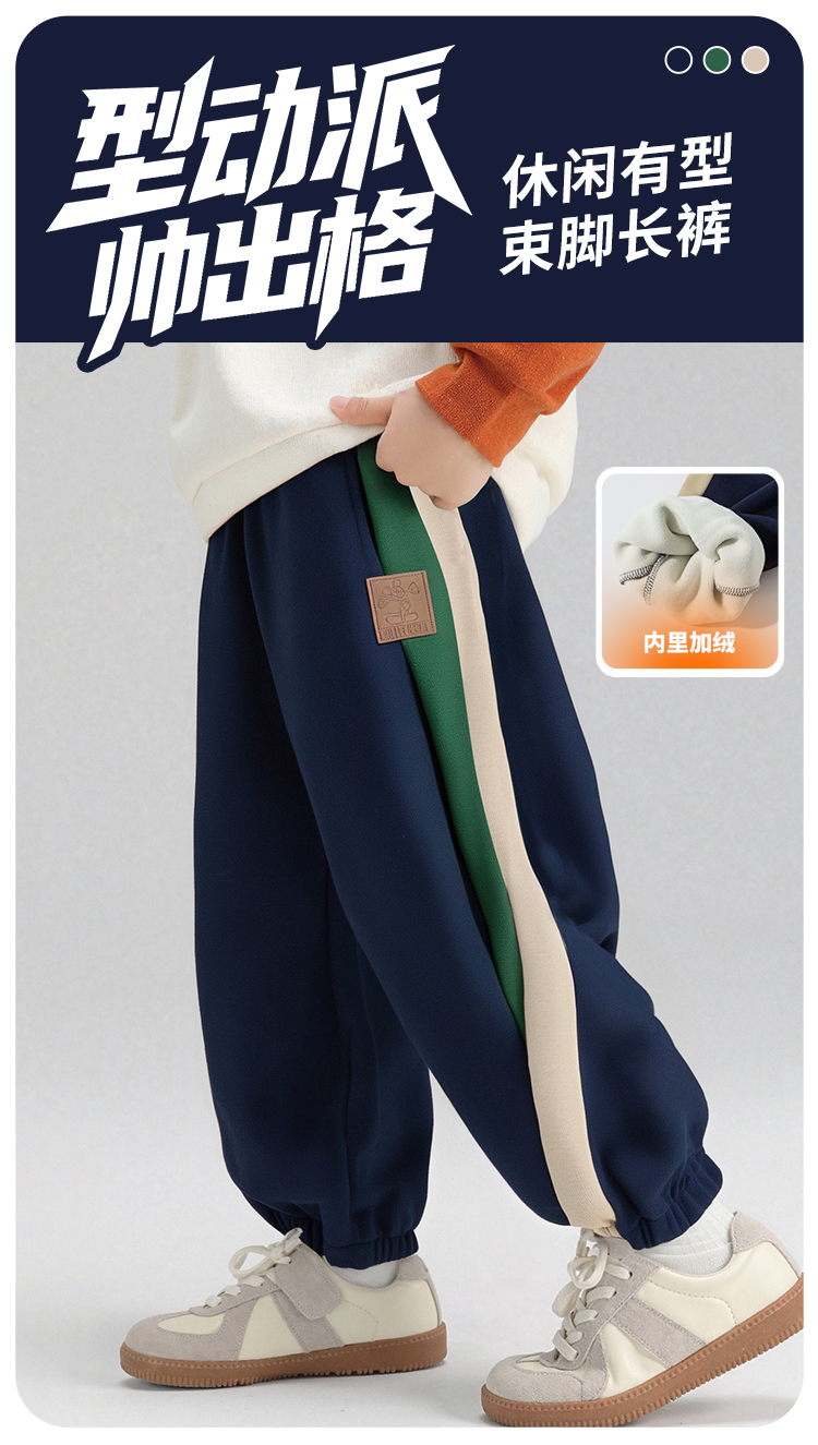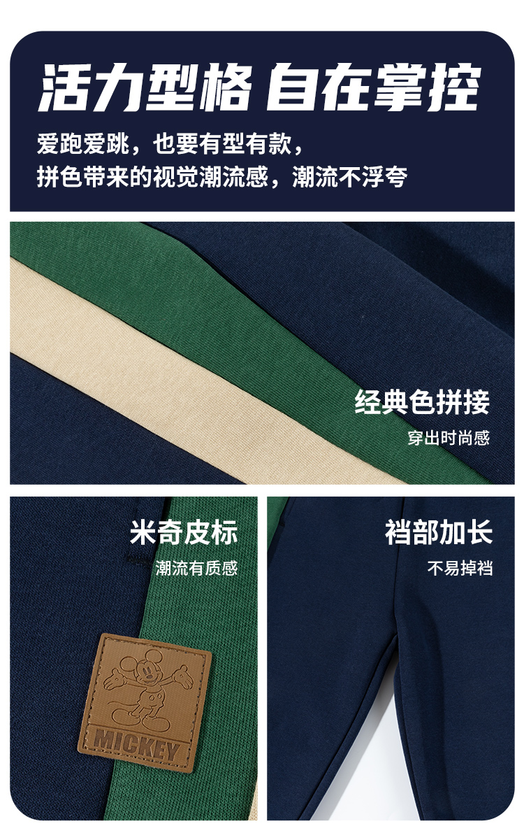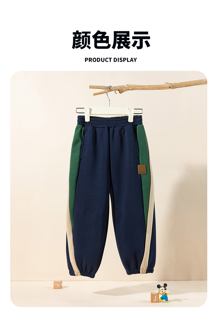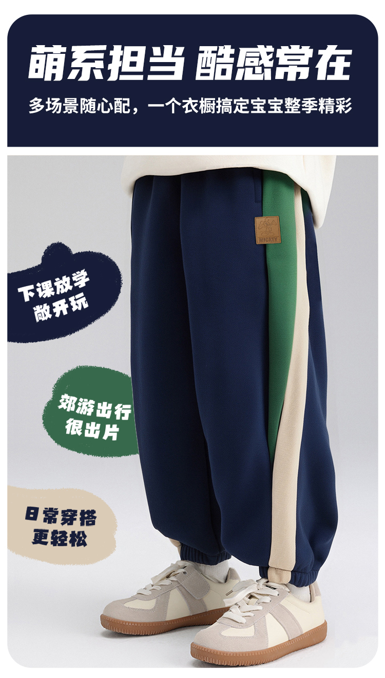 迪士尼儿童卫裤男童休闲裤2025春秋新款运动慢跑裤中大童撞色束脚裤ZD3EK053