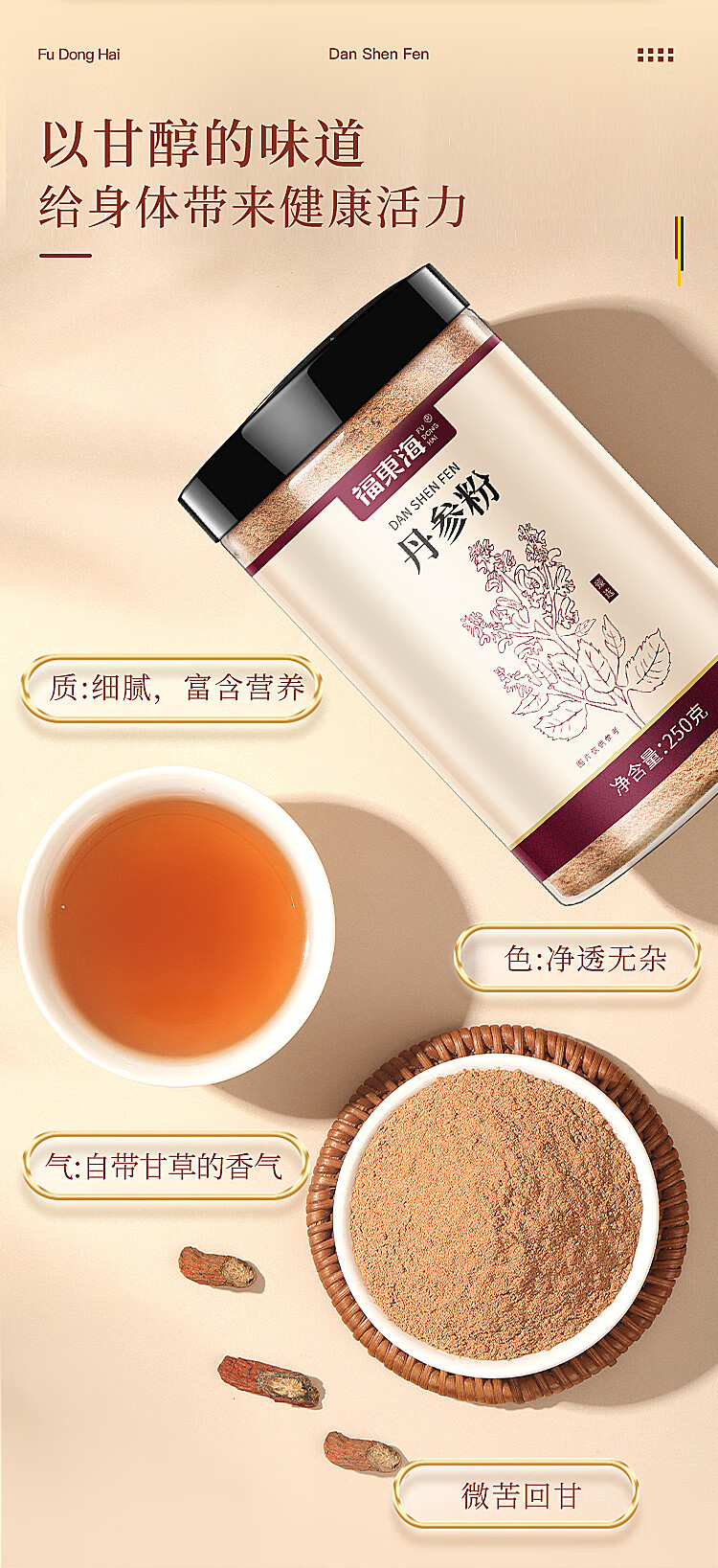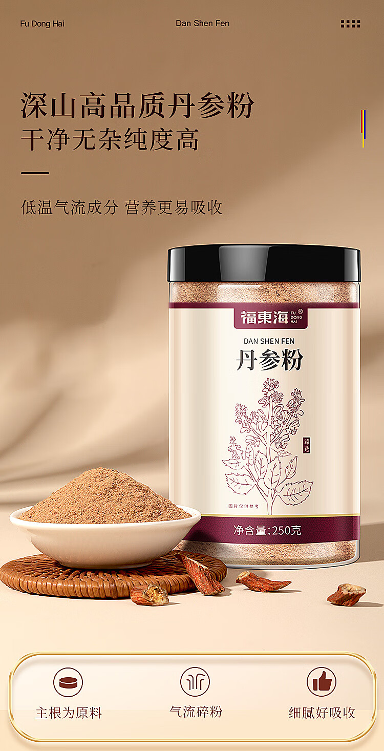福东海 丹参粉250克 超细粉 紫丹参片磨粉 送礼袋中老年长辈滋补礼品