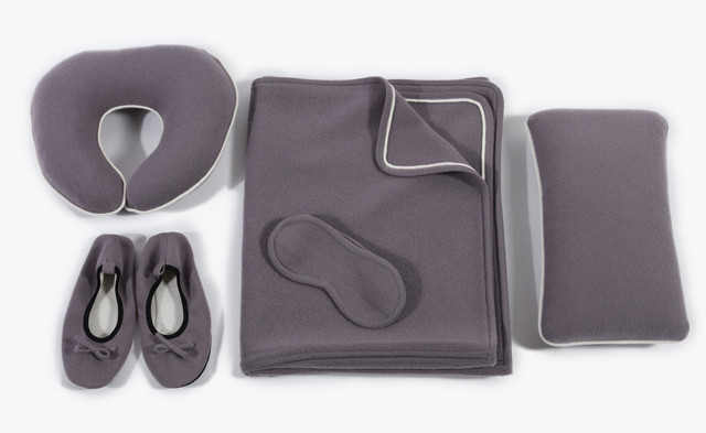 旅游套装礼盒,差旅定制。包括一个U形枕,一件披肩,披毯,一副眼罩,一件小靠枕,一双旅游、居家软底鞋。