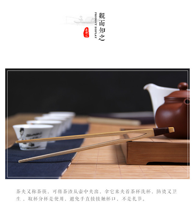 永利汇绕线茶夹子防滑杯夹镊子天然竹制功夫茶具茶道六君子零配件日式