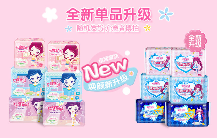 七度空间 超薄型夜用及加长日用卫生巾 娟爽网面 10片275mm