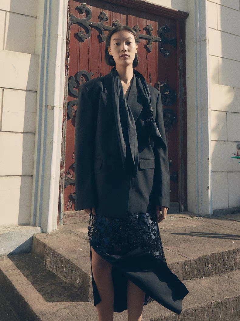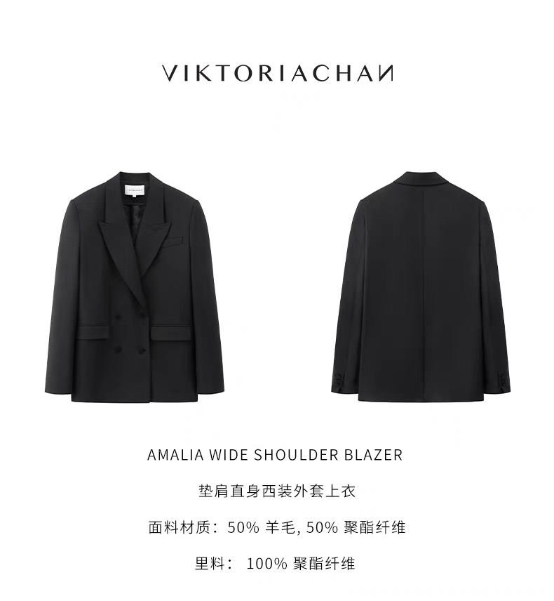 Viktoria Chan|AW23045 Amalia wide shoulder blazer [ 黑 / 灰 ]