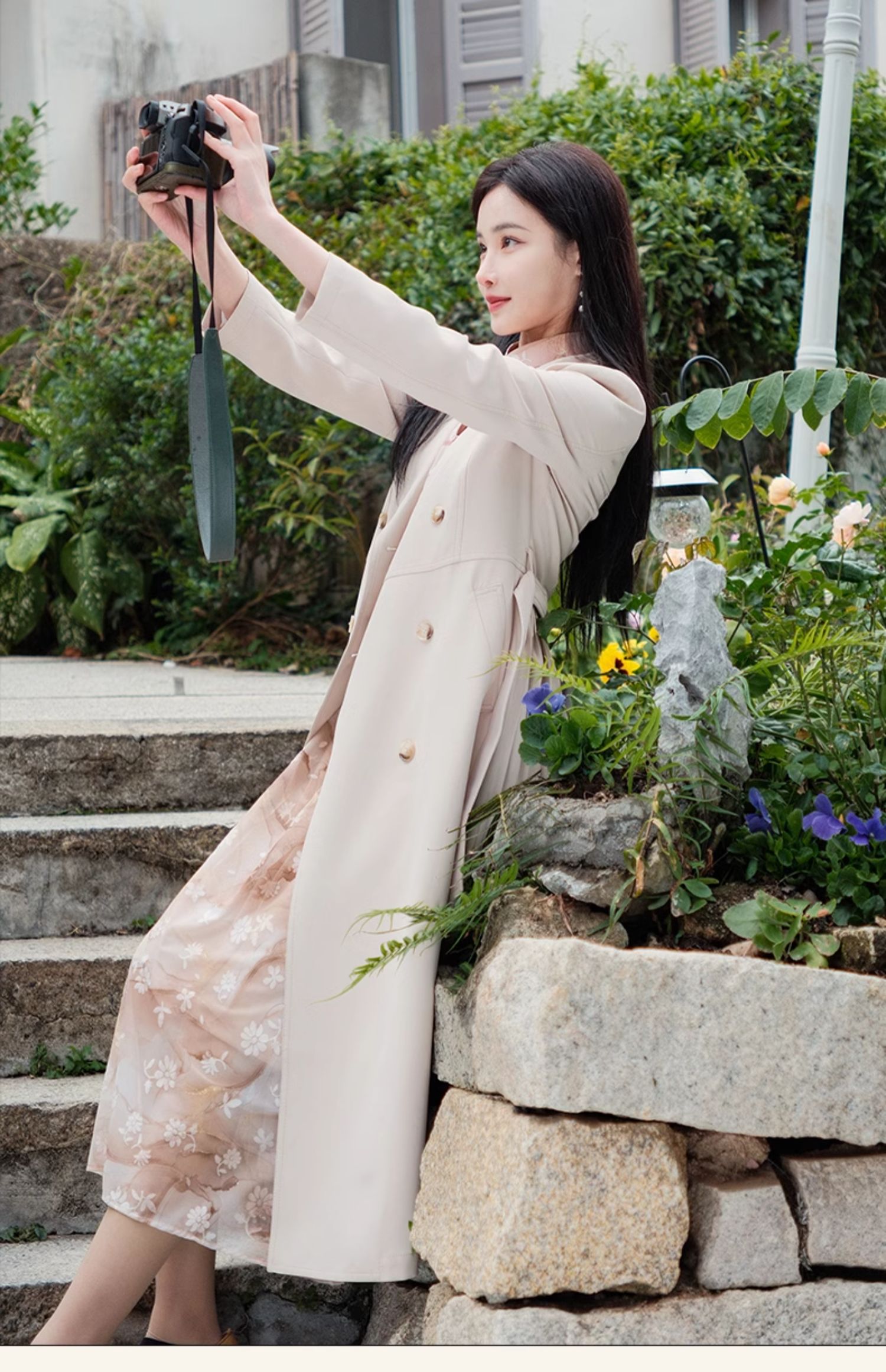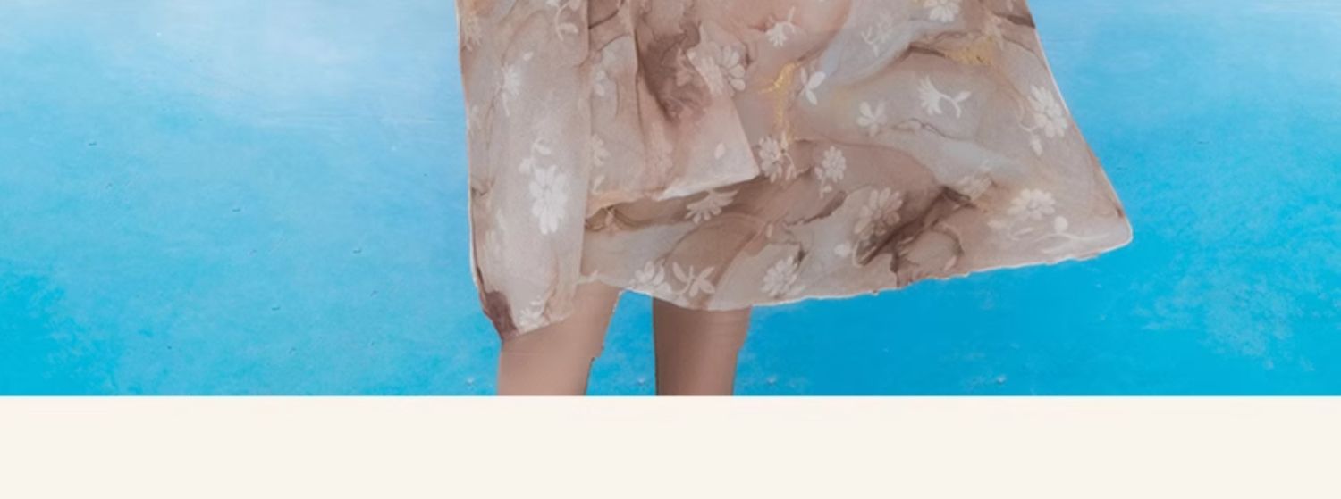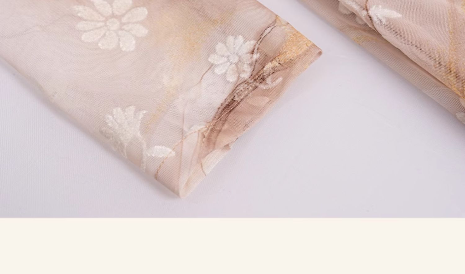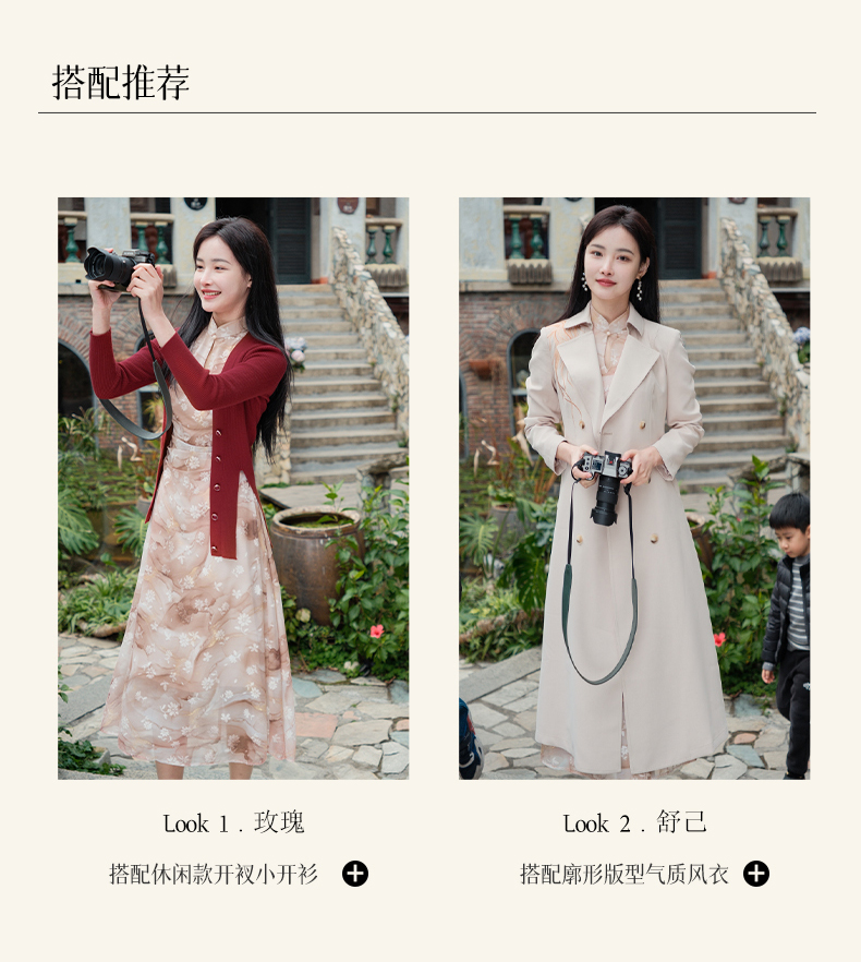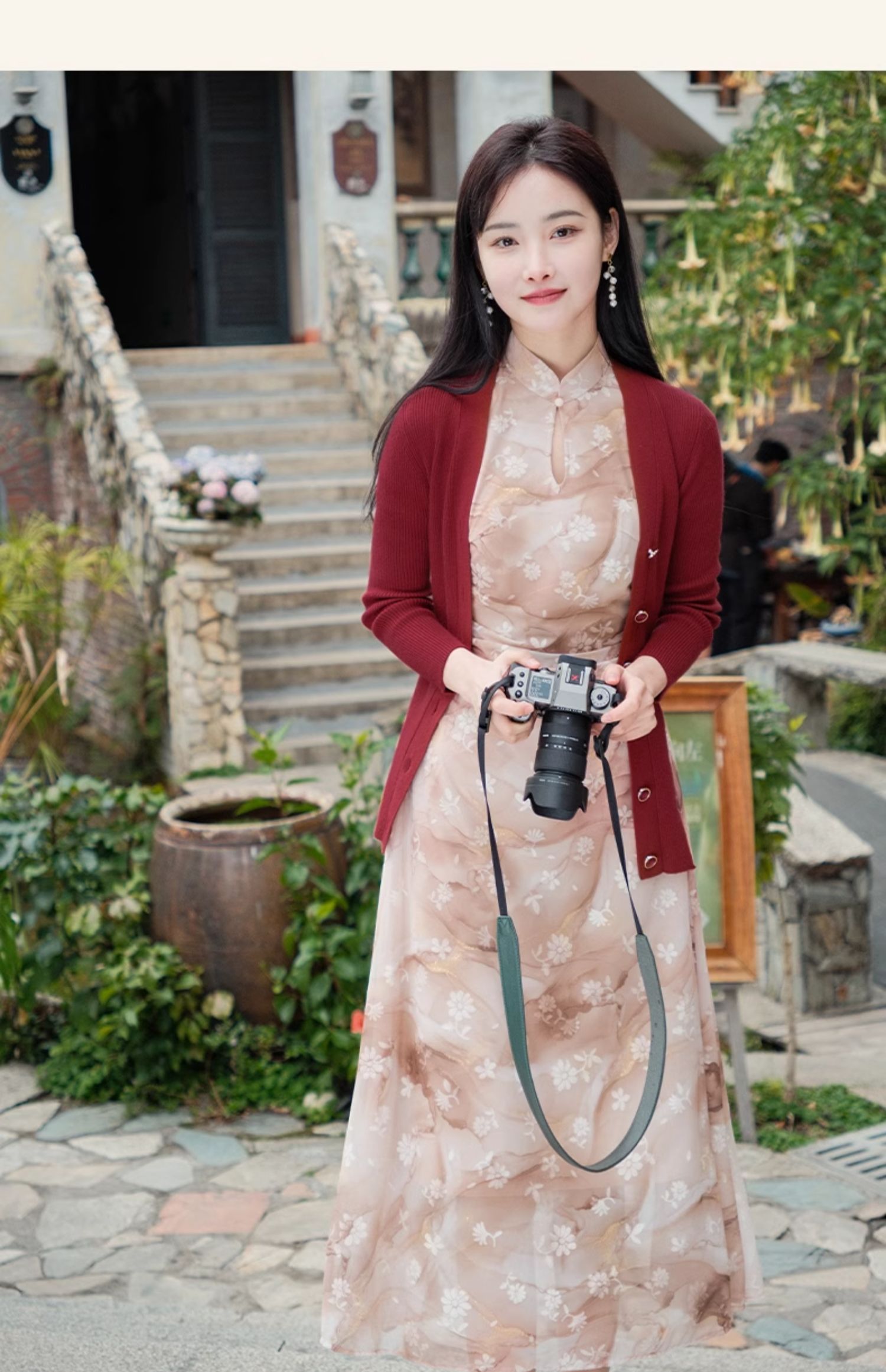上海逸红颜晚漾2025年春夏新款网布植绒印花水滴领抽褶改良旗袍裙
