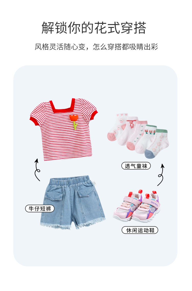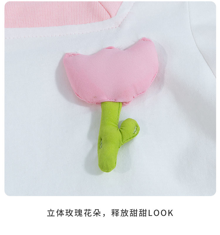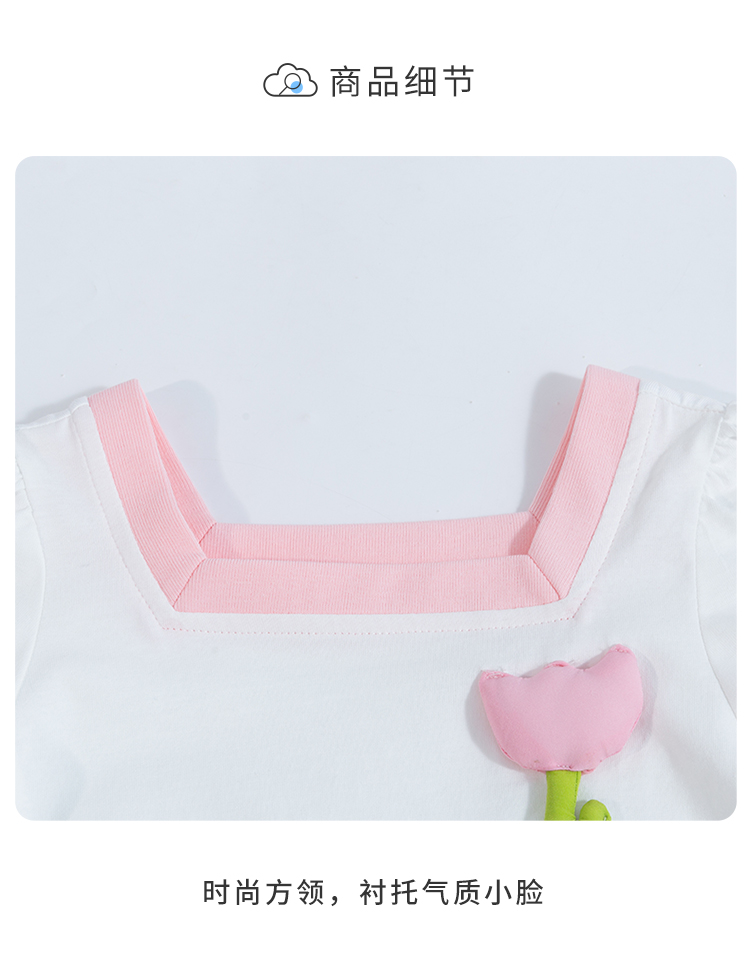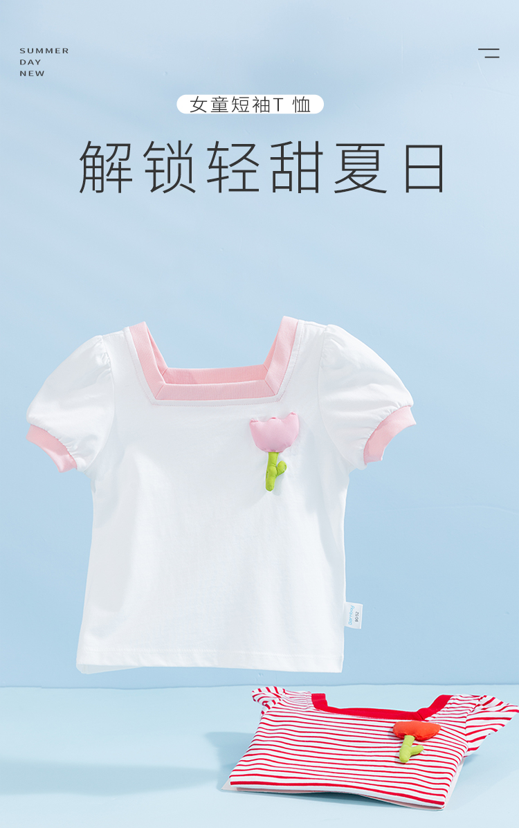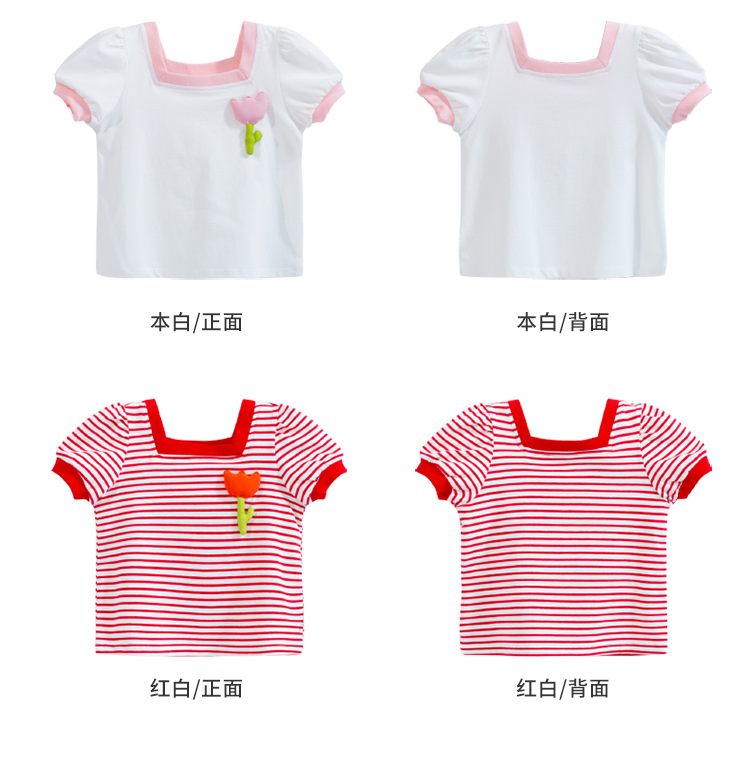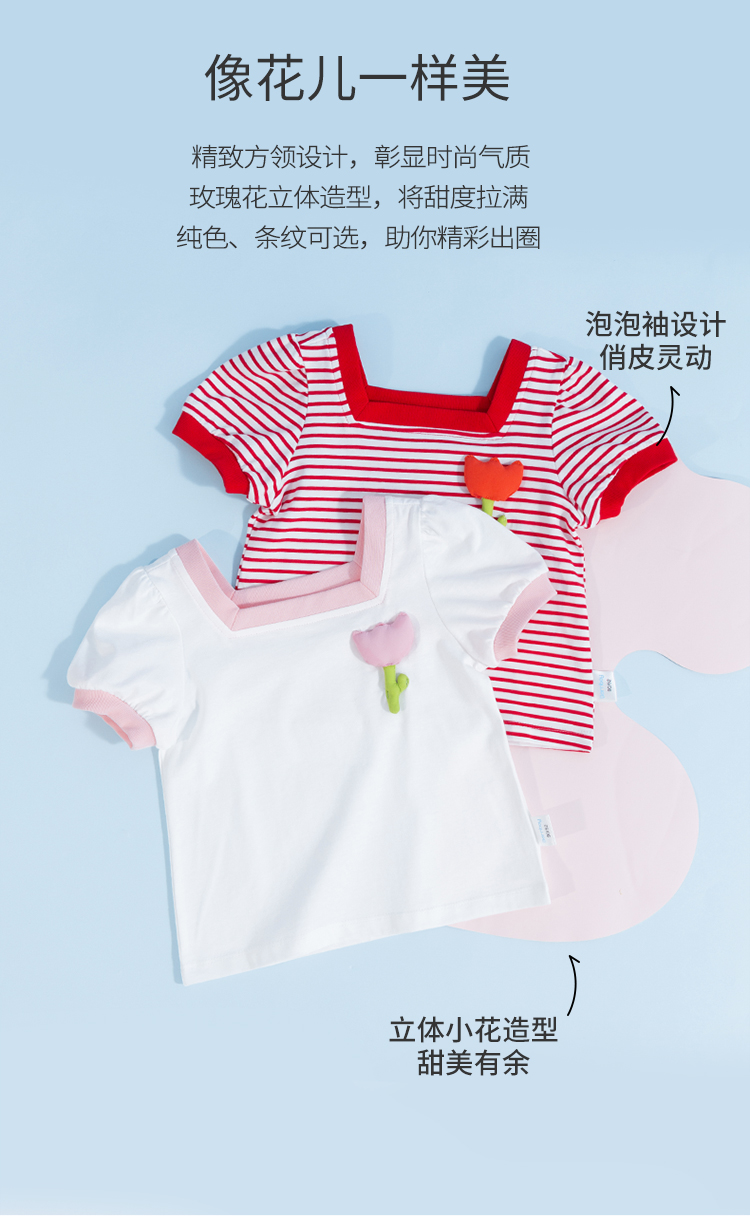 贝贝怡女童短袖立体小花T恤夏季新款中小童条纹纯棉宽松儿童上衣