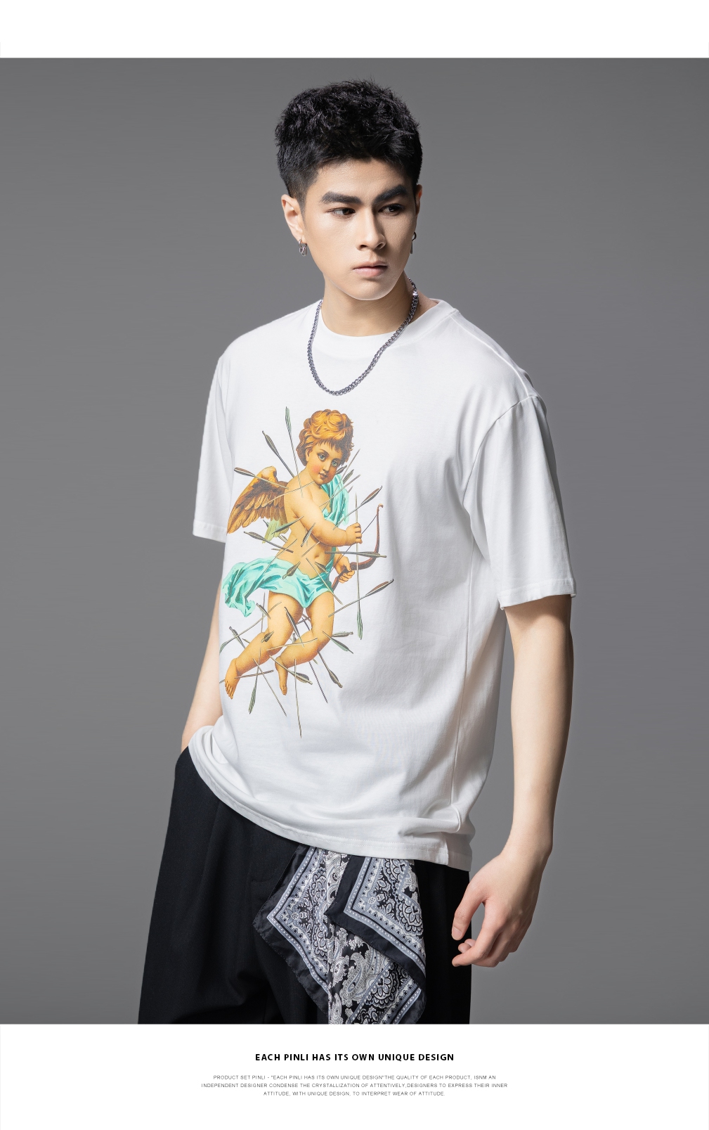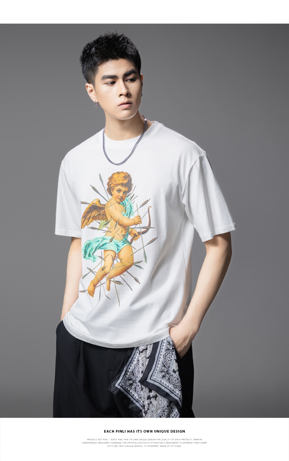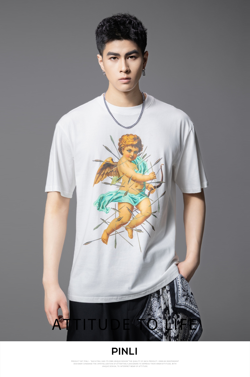 PINLI品立2025夏季新款男士圆领人物印花短袖T恤上衣BG252111035
