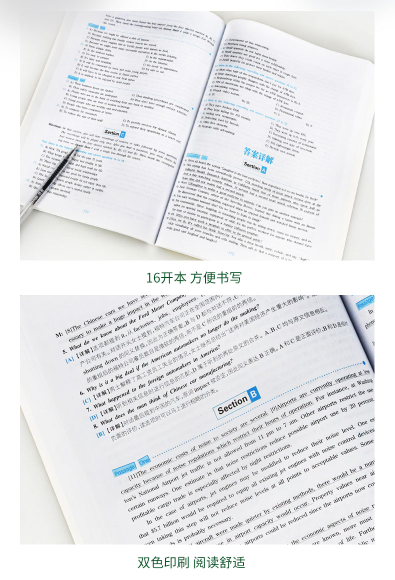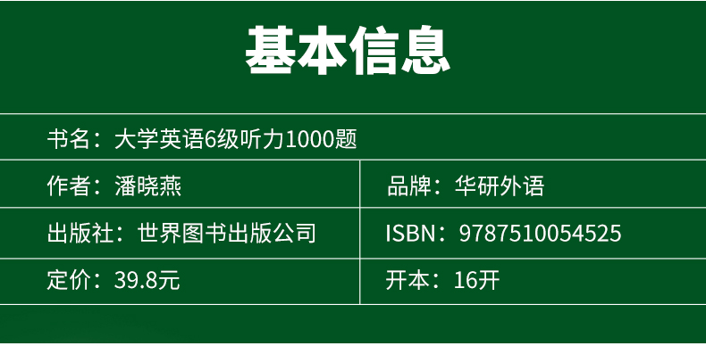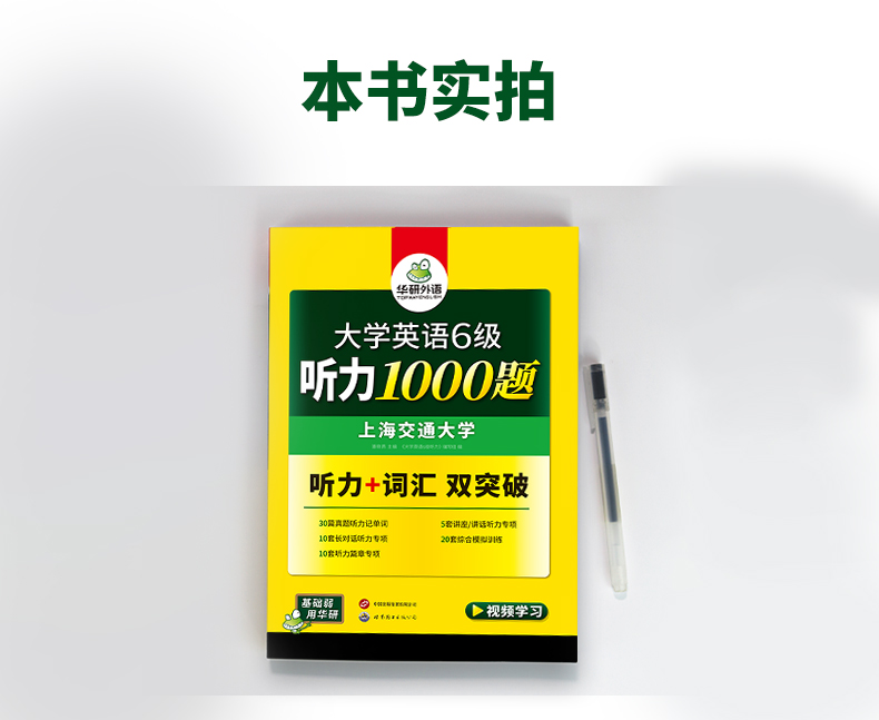 1. 大开本大学英语六级听力训练书,方便书写及答题;
