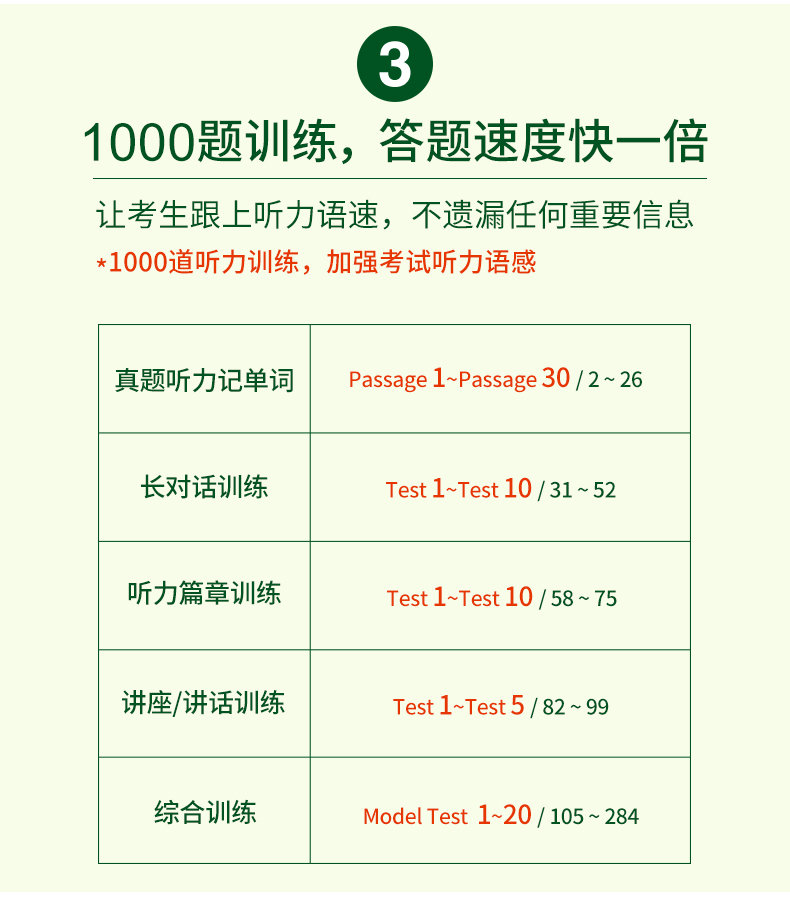 2. 大题量训练六级听力,培养考生快速答题的能力;