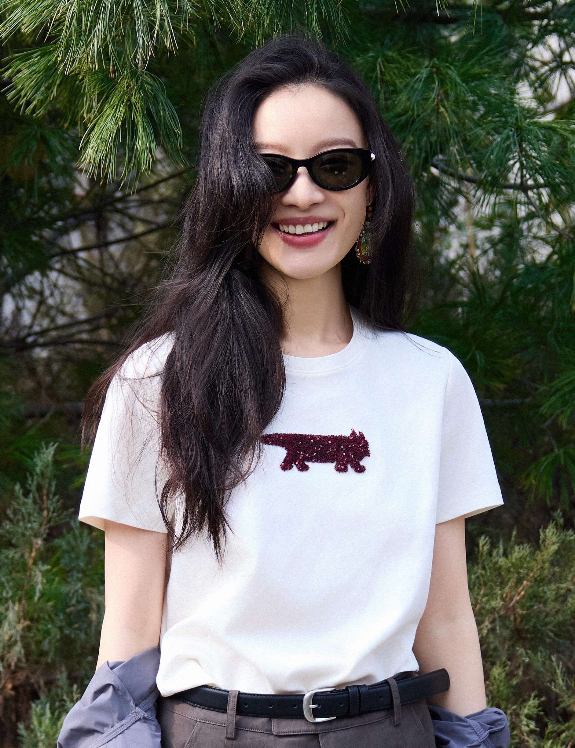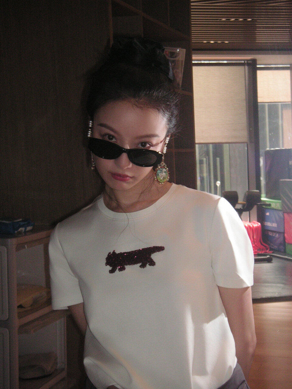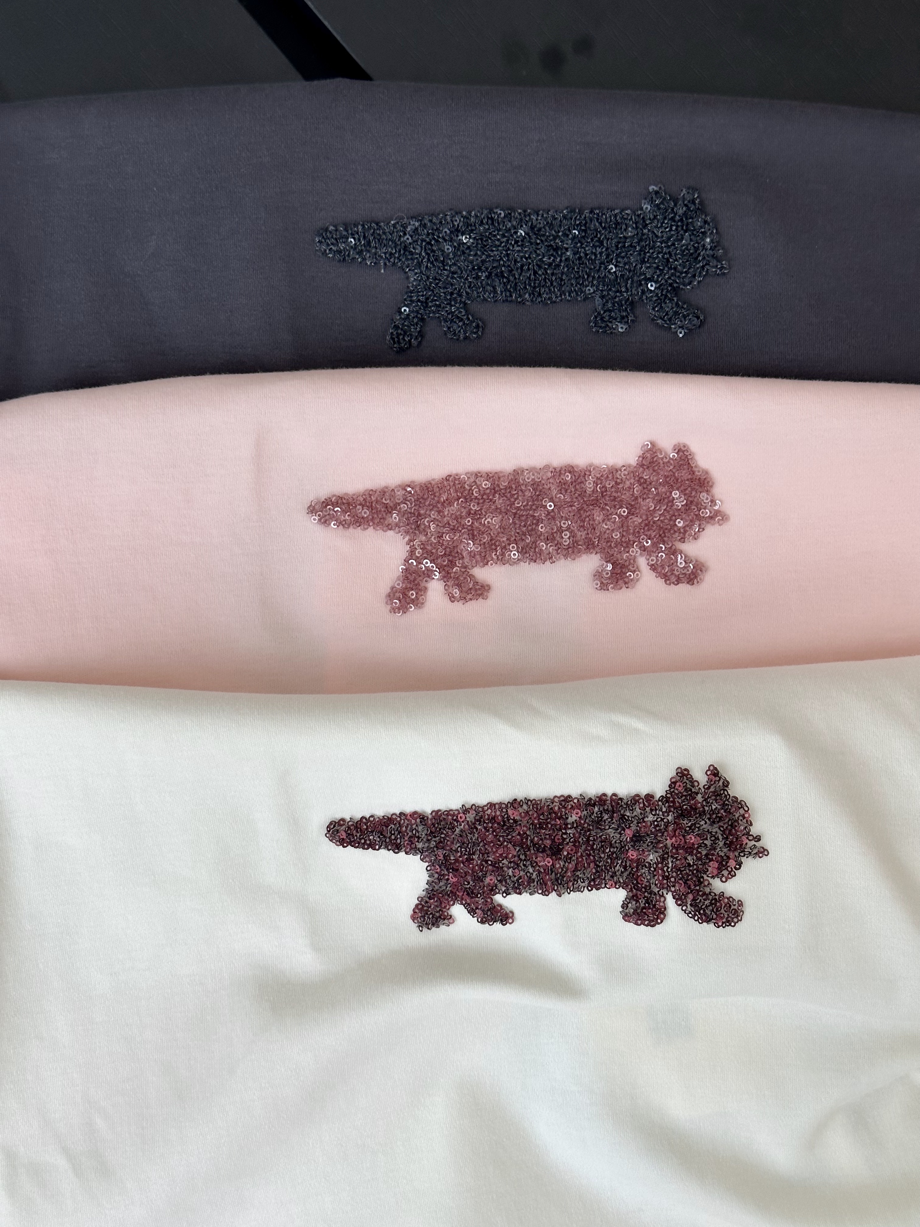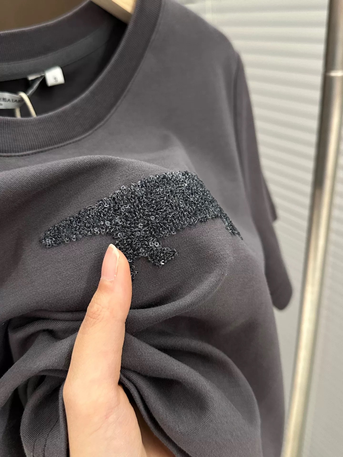 胸前图案立体感亮片绣工艺!亮片精巧排布,在光下闪耀,高级感十足!!