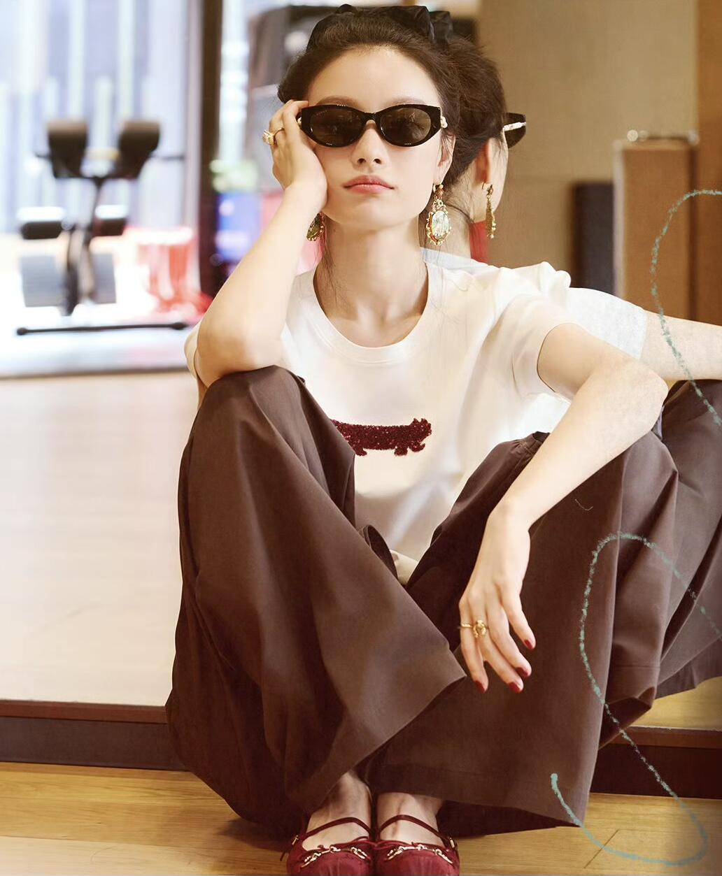 一个身材可以两个穿码,小合身版型,喜欢穿松快拍大一码。纯原单捡漏,倪妮私服,LISA 猫联名螺纹圆领T!官网500+~