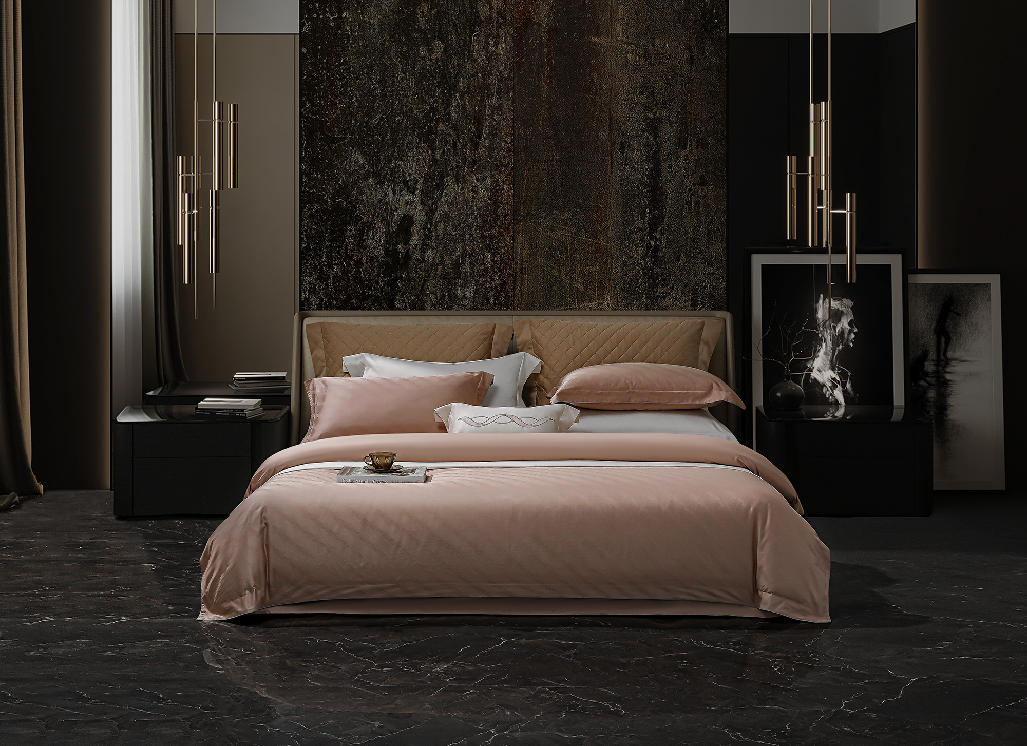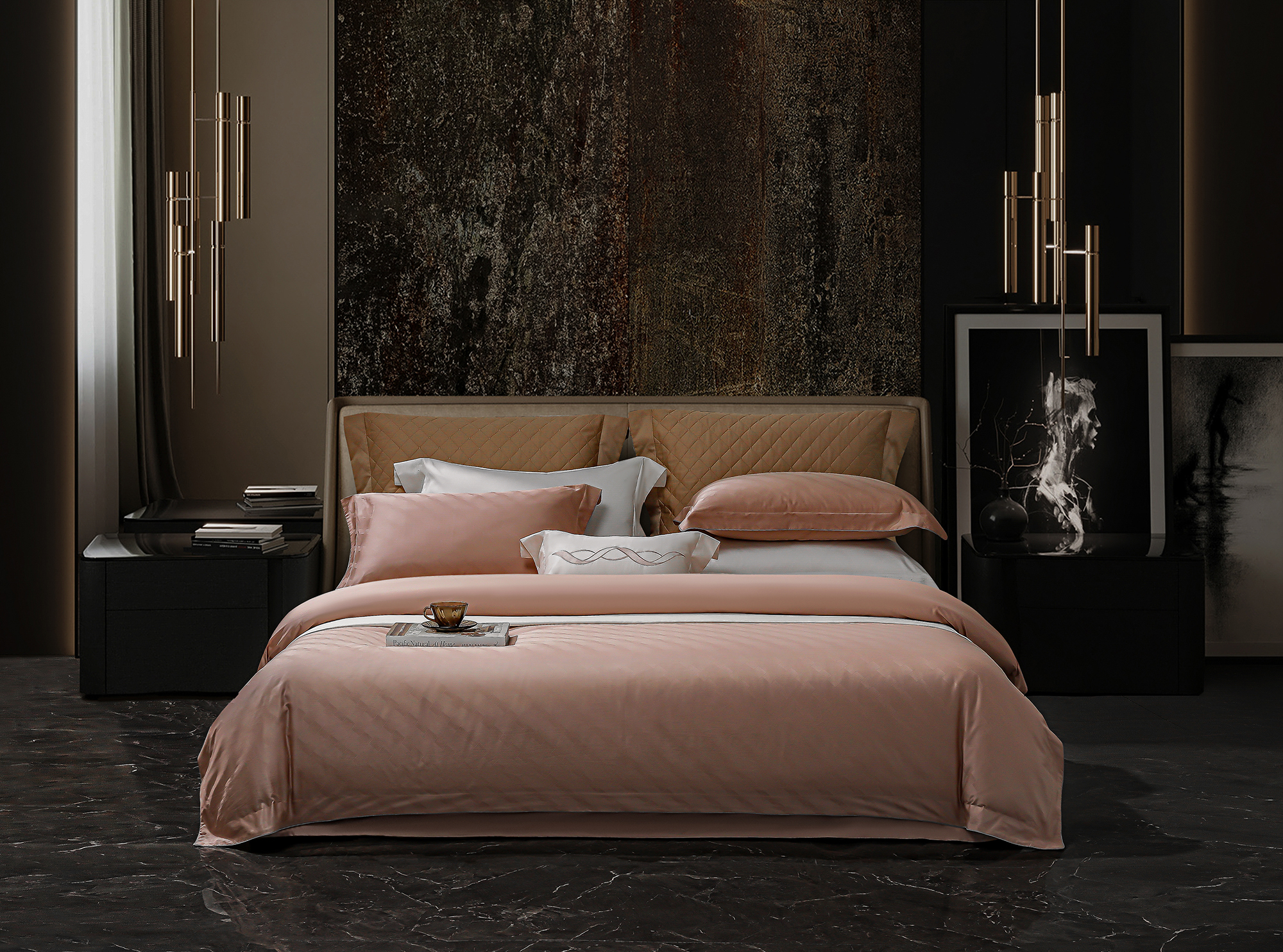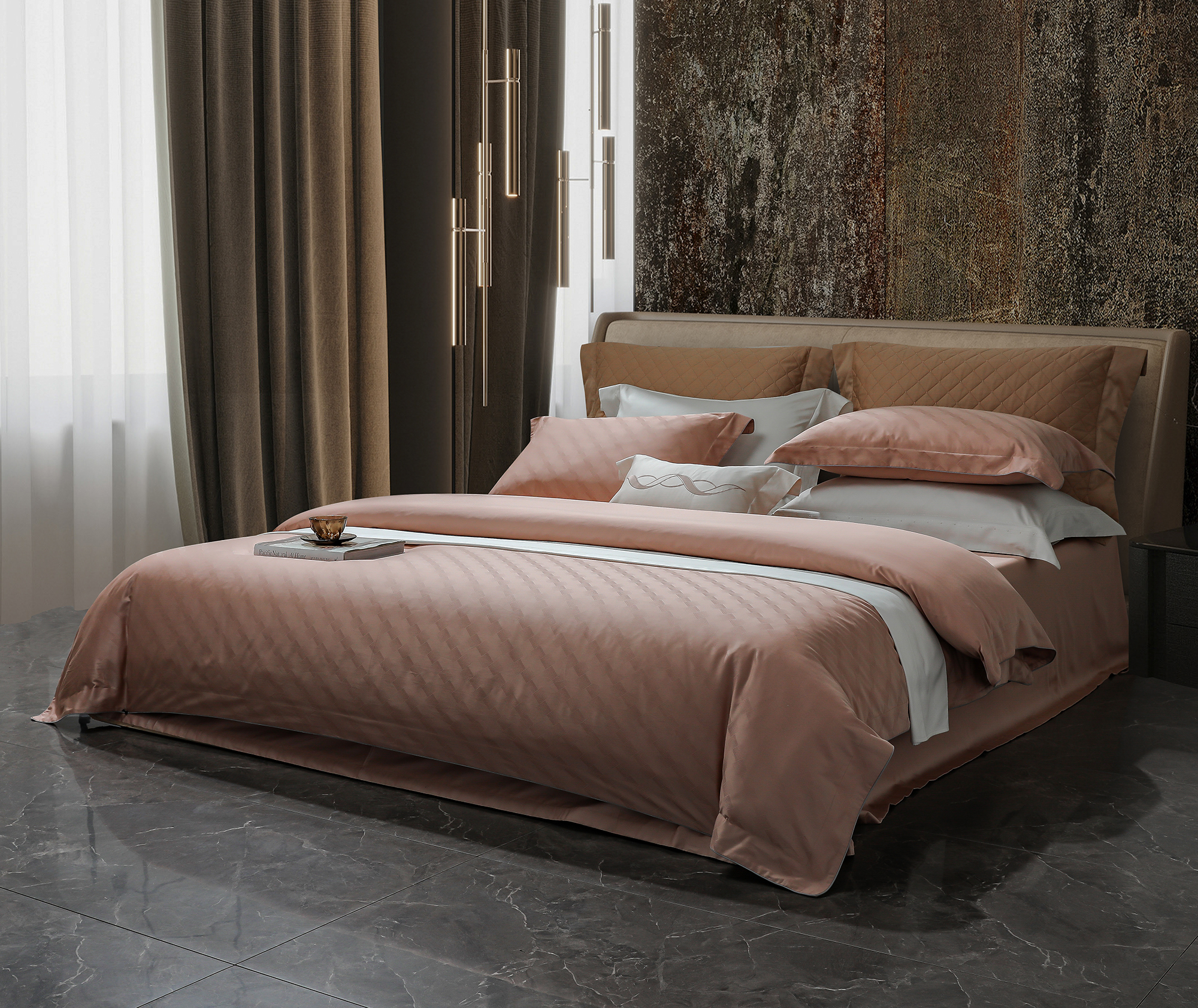 60S长绒棉全棉四件套纯色大提花 律-黎莎粉