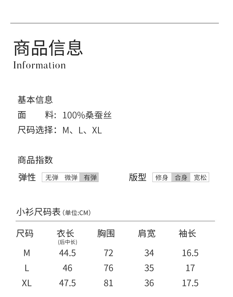金三塔真丝小衫女100%桑蚕丝圆领显瘦舒爽透气可外穿上衣女新品 YZFEA702/YZFEA902