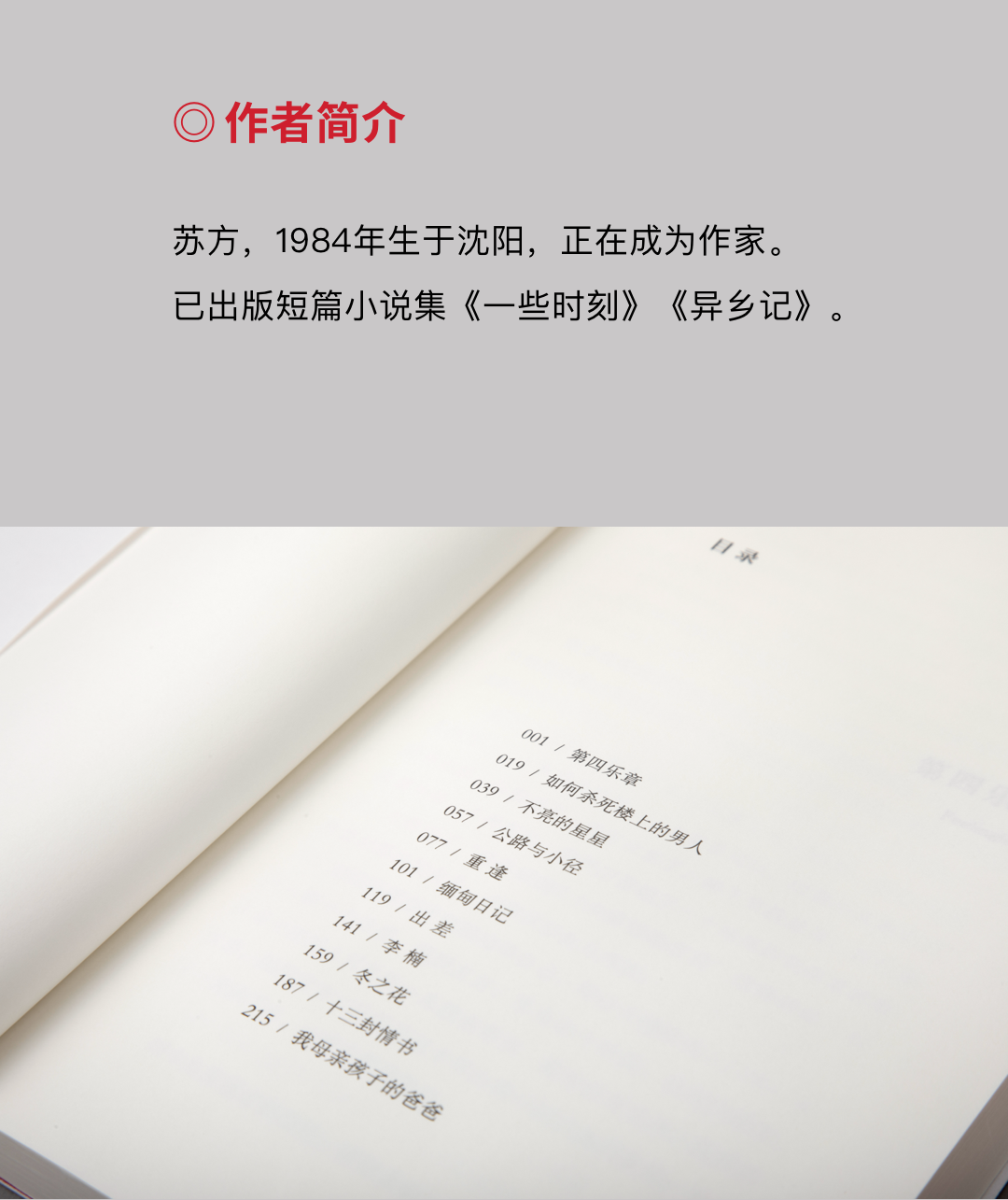 苏方,1984年生于沈阳,正在成为作家。已出版短篇小说集《一些时刻》《异乡记》。