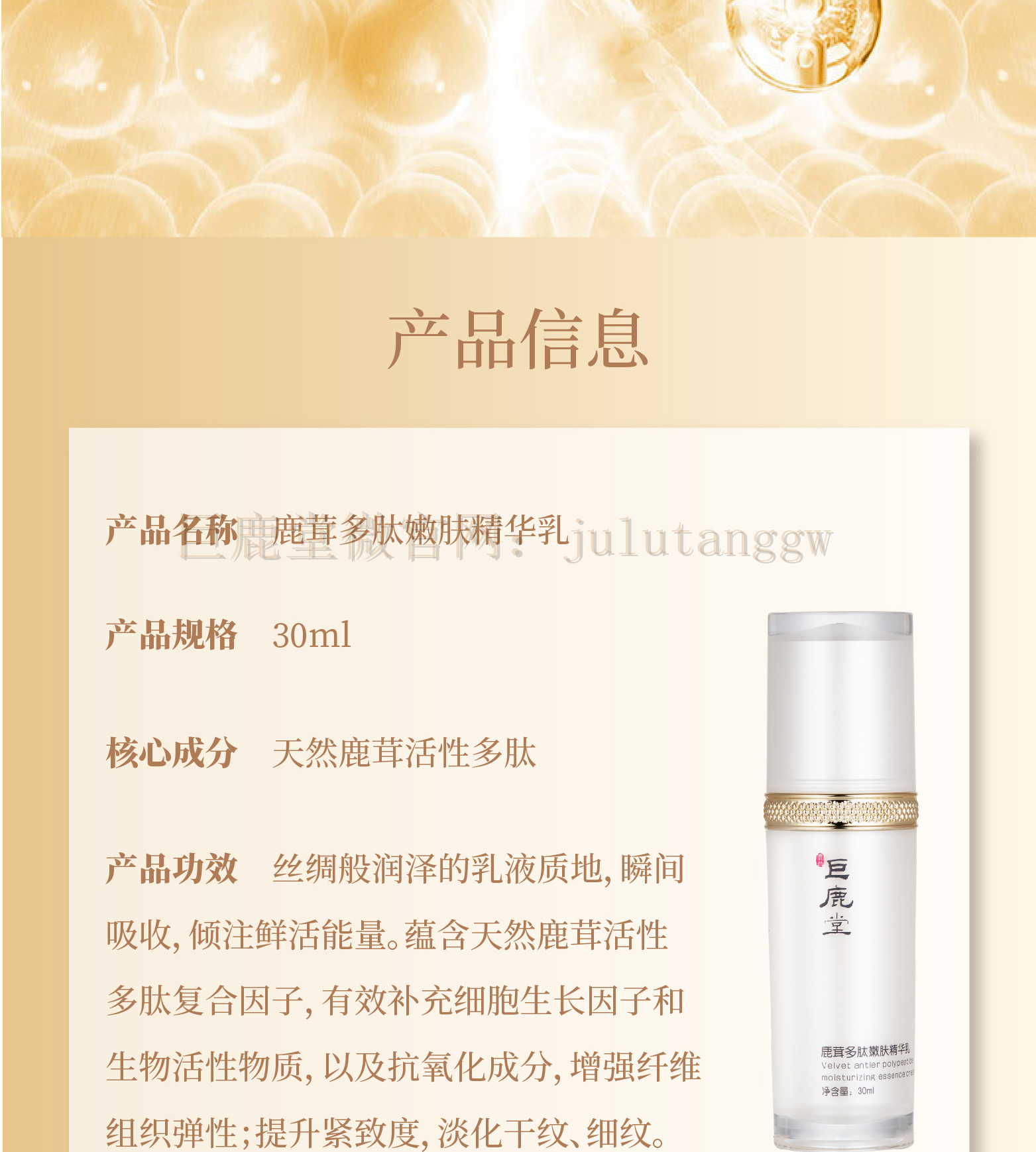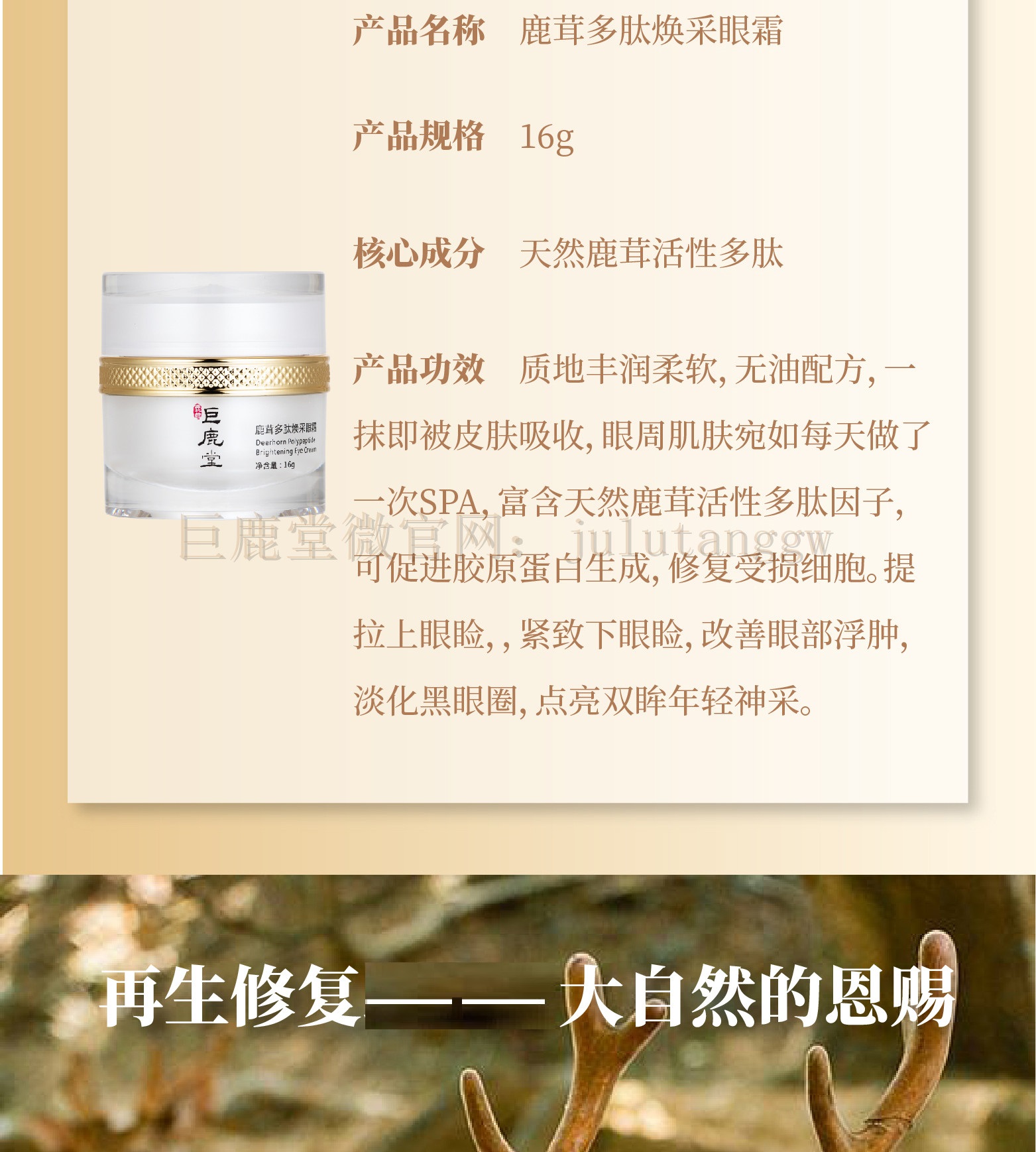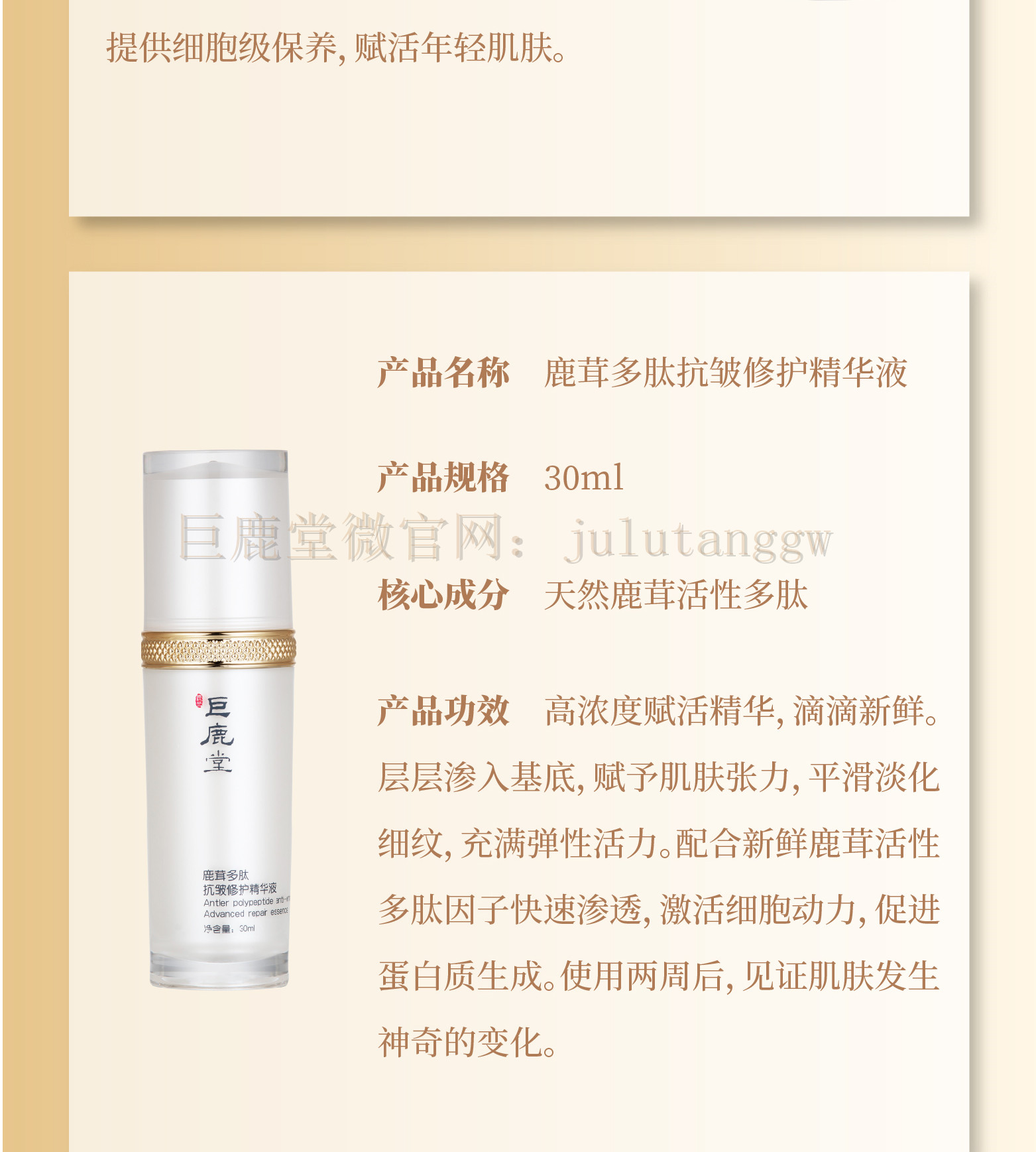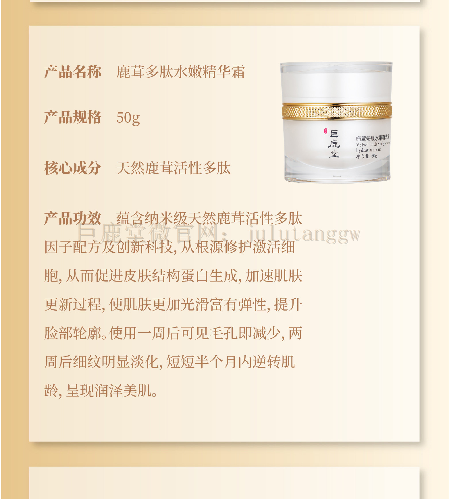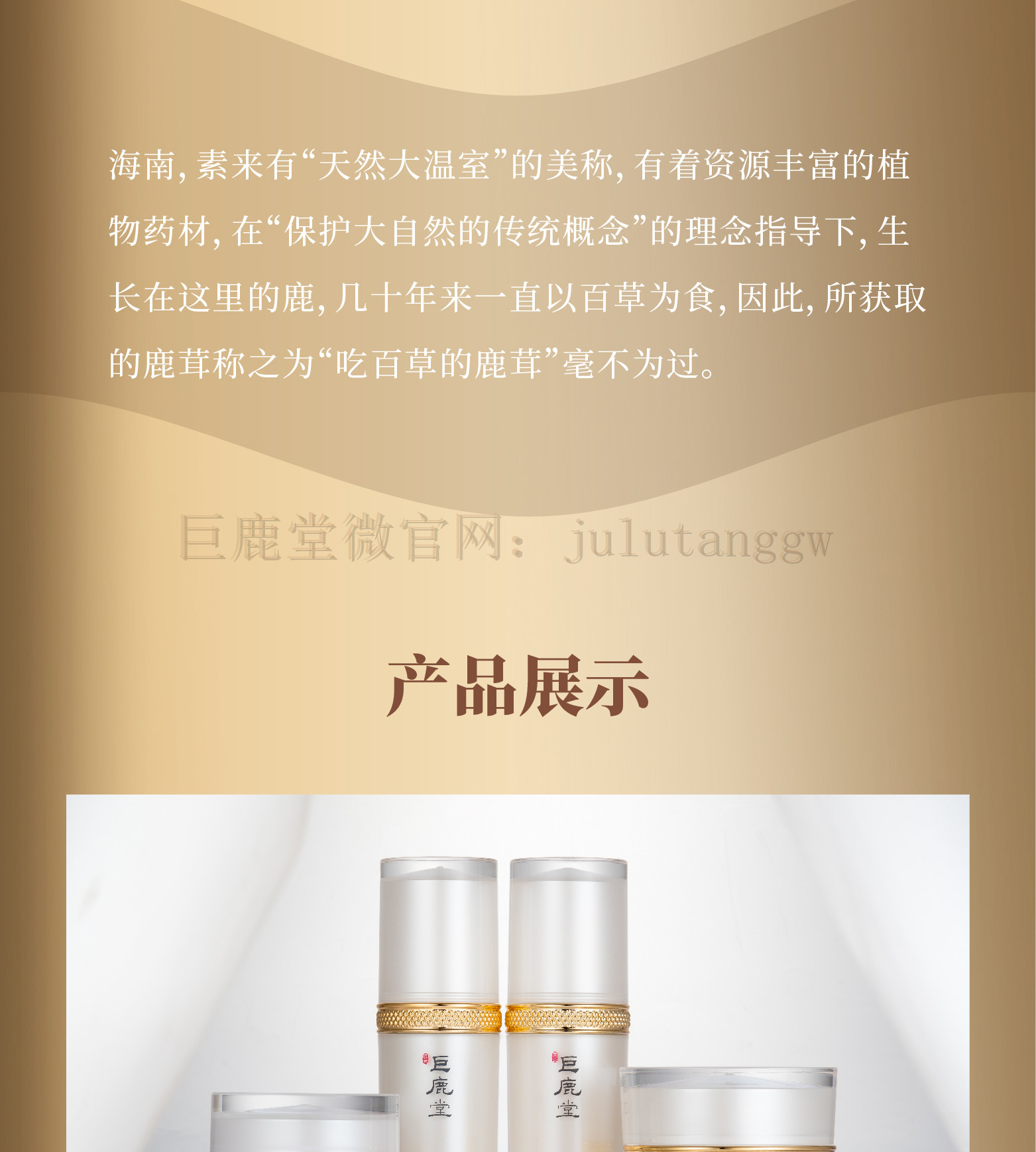 - 海南巨鹿堂公司是一家以鹿文化为核心的养殖、提炼(研究)、成品、销售的产业链公司,同时集生物工程研究,化妆品开发、生产、销售、培训、教育、服务及医学保健为一体的保健美容品专业机构。