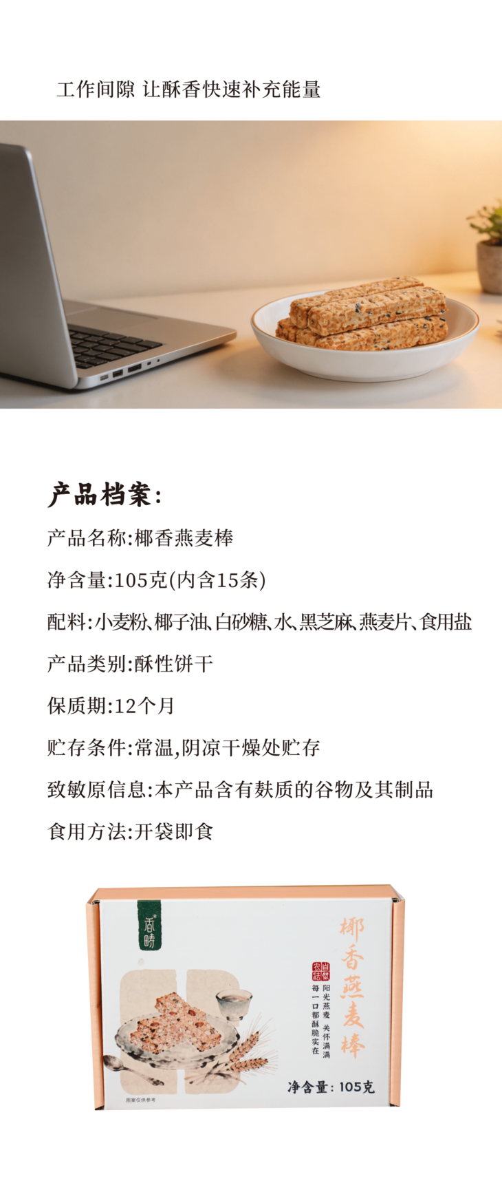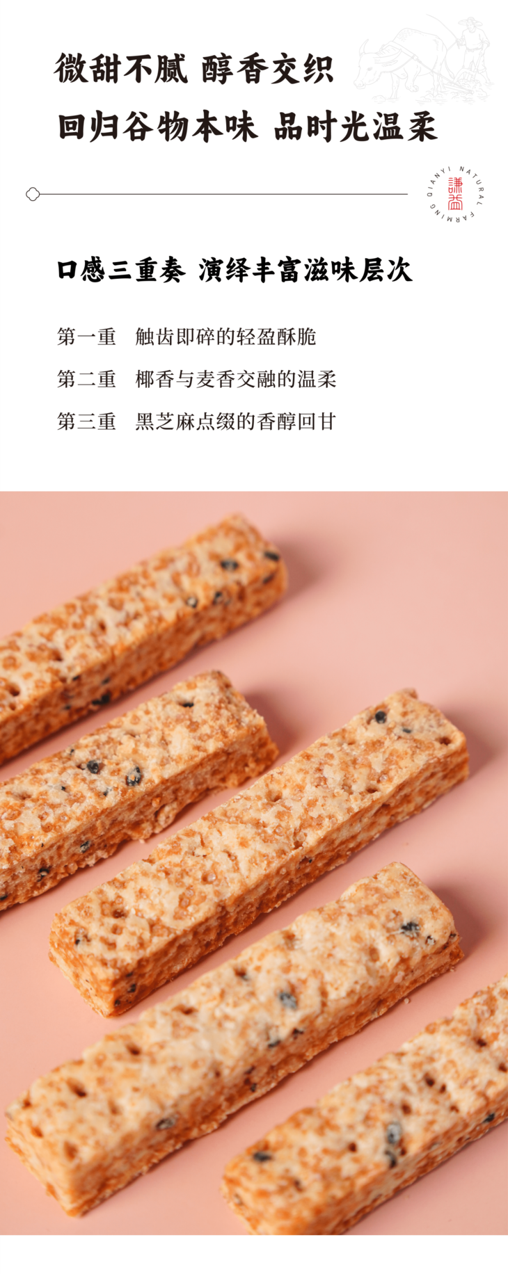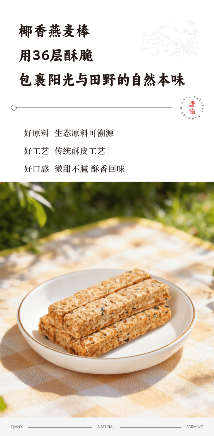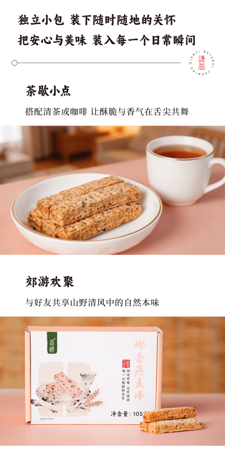 [屁侠推荐]谦益香畴 椰香燕麦棒105g 36层酥脆不甜腻 醇香回味 (内置独立小袋装携带方便)周三